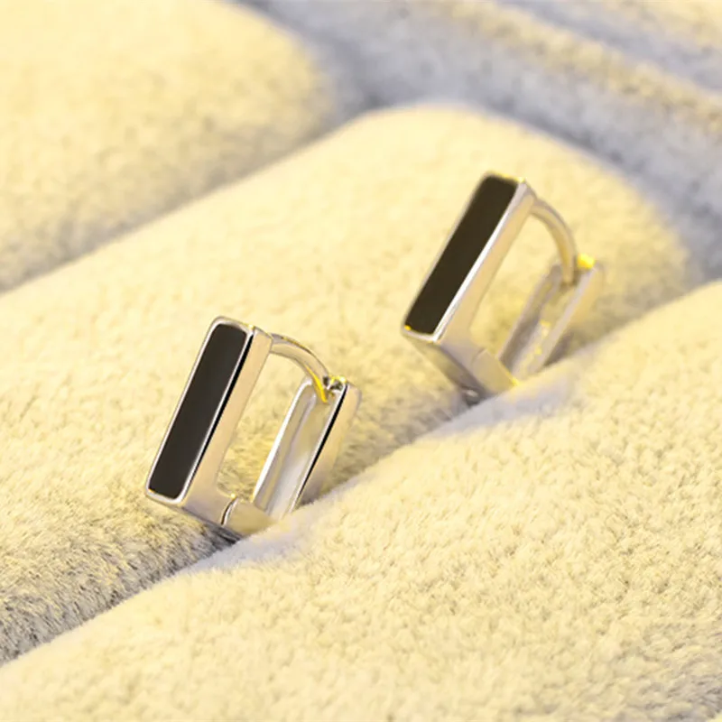 925 стерлингового серебра простой женский свадебные серьги квадратный черной эмалью в виде капель с кристаллами в форме женские прекрасные модные вечерние ювелирные изделия