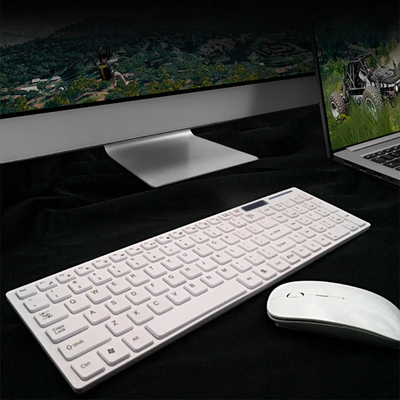 Универсальный бесшумный ультра-тонкий 2,4G беспроводной набор клавиатуры и мыши для ноутбука ПК компьютераОписание:100% абсолютно новый, высокое качествоОсобенности:100% абсолютно новый и высококачественный.Тонкая беспроводная клавиатура и мини-оптическая мышь с usb-приемником.Это идеальное Входное устройство для вашего ПК, ноутбука и ноутбука.Он принимает 2,4 ГГц Беспроводная технология передачи для сильного и закрепить беспроводной сигнал.Он оснащен новыми узкими клавишами, позволяющими более плавно, тише и быстрее работать при наборе текста.Новая улучшенная 2,4 ГГц беспроводной для гораздо более широким диапазоном и меньше шансов для помех от других близлежащих беспроводных устройств.Характеристики:Соединение клавиатуры: беспроводноеОптическое разрешение: 1000 DPIПодключение мыши: БеспроводнаяТип: тонкий, беспроводнойАккумулятор мыши: 2 батарейки ААА (не входит в комплект)Интерфейс: USBКоличество ключей: 104Аккумулятор клавиатуры: 2 аккумулятора AAA (не входят в комплект)Размер клавиатуры: прибл./ 382x115x22 мм/15.04x4.53x0.87inРазмер мыши: прибл./57x113x2 2 мм/2.24x4.45x0.87inЦвет: черный/белыйМатериал: АБС-пластикКоличество: 1 комплектПримечание:Перевод ед. измерения: 1 см = 10 мм = 0,39 дюймов.Возможны отклонения в 0-1 см вследствие измерений вручную. Пожалуйста, убедитесь, что вы не возражаете, прежде чем сделать ставку.Из-за разницы между различными мониторами изображение может не отражать фактический цвет изделия. Спасибо!Посылка включает в себя:1 x клавиатура1 х Мышь1 х разъем(Другие демонстрационные аксессуары на картинке не включены.)