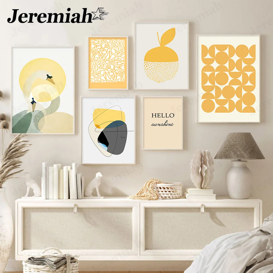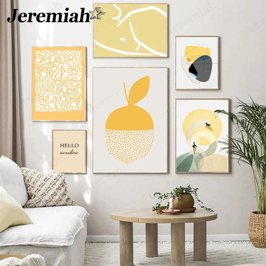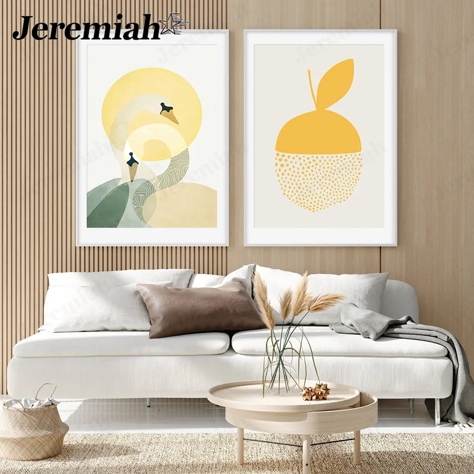 Современный модный геометрический Графический постер на холсте Абстрактная желтая папайя яблоко живопись настенное искусство нордическая гостиная украшение для дома