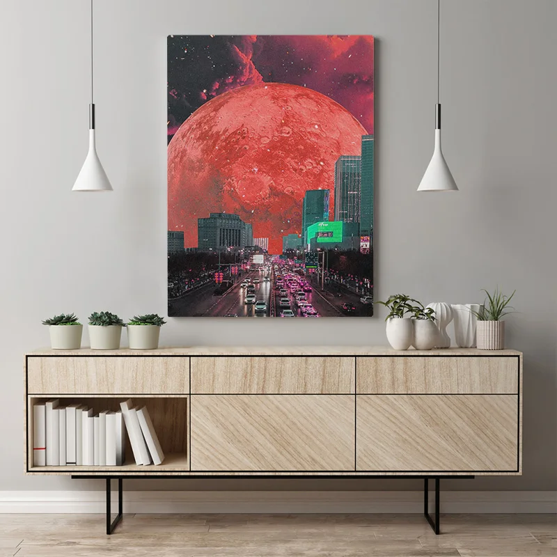 Современный живописный эстетика Synthwave Сюрреализм холст картины ...