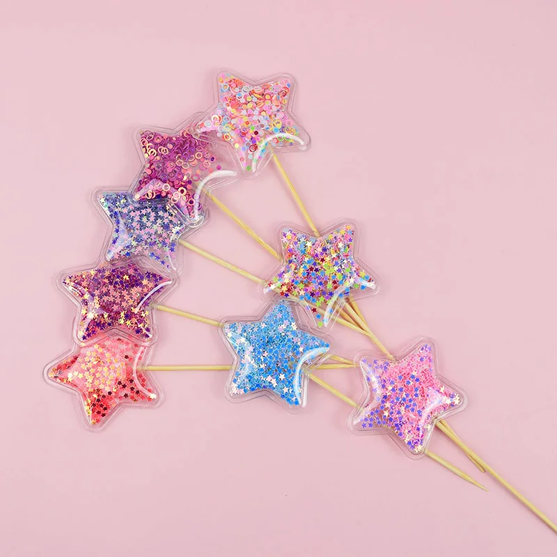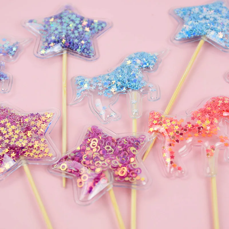 5 шт. с сияющими блестками; Цвет: Единорог торт фигурки жениха и невесты; Прозрачный с блестками-звездочками Топпинг для кексов для Одежда для свадьбы, дня рождения торт декоративные пузырьки