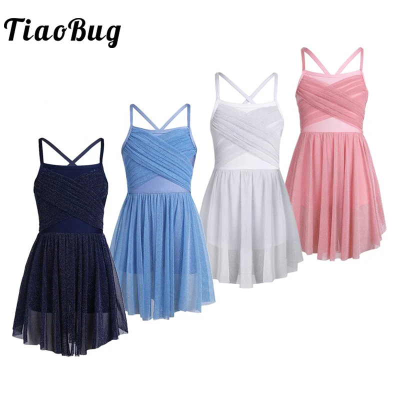 TiaoBug балетное гимнастическое платье девушка художественный Фигурное катание гимнастические купальники детские блестящие с низким вырезом на спине Современная Одежда для танцев