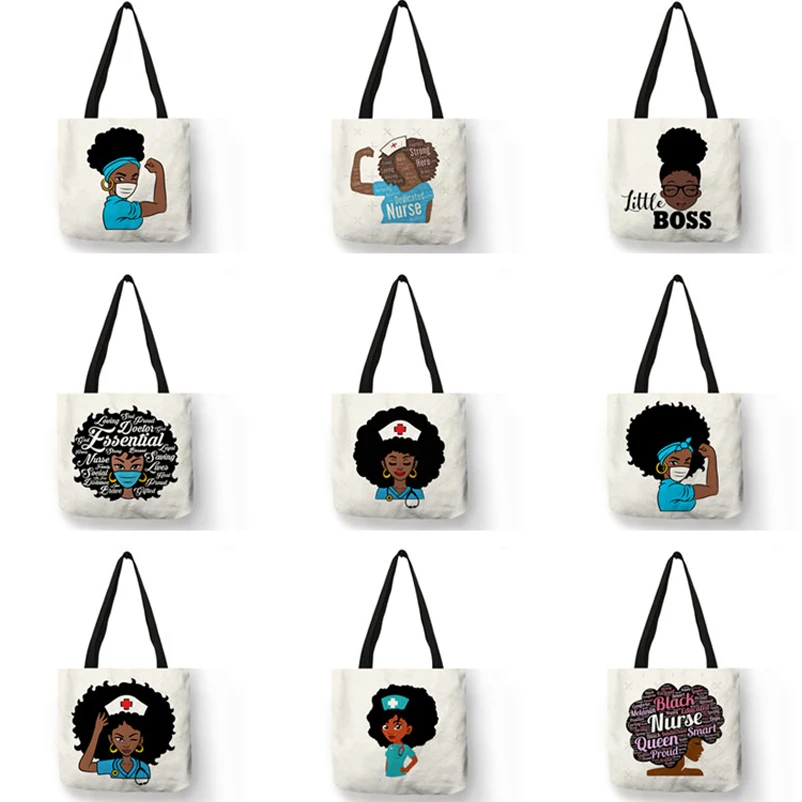 Черные женские сумки с принтом медсестры, модные сумки для девушек, сумки через плечо в американском и африканском стиле, сумки для покупок, супермаркеты, для улицы