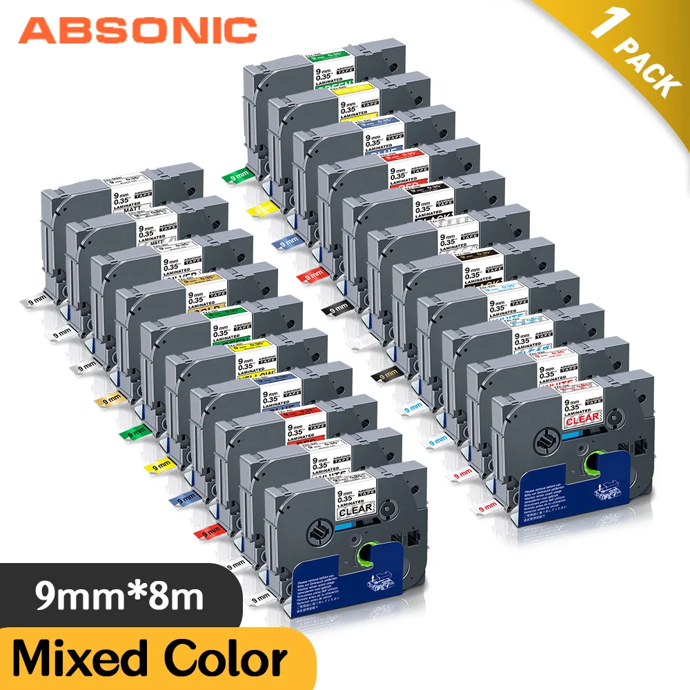 Absinic 1 шт. 9 мм лента для этикеток для Brother 121 221 421 521 621 721 821 921 ламинированная этикетка для принтера этикеток Brother