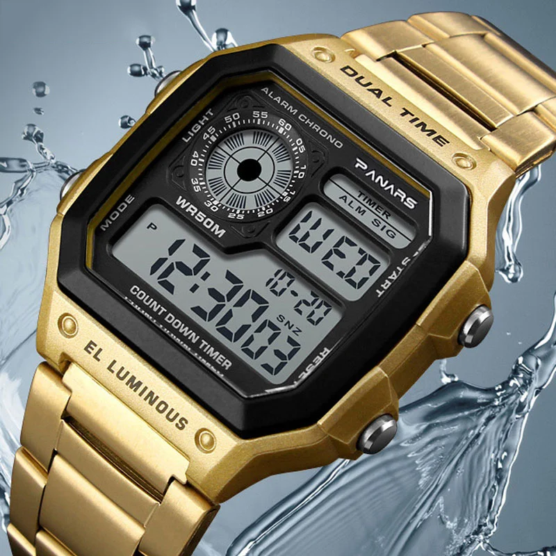 Часы PANARS мужские электронные из нержавеющей стали, роскошные деловые светодиодсветодиодный цифровые спортивные, водонепроницаемость 50 м, 8113