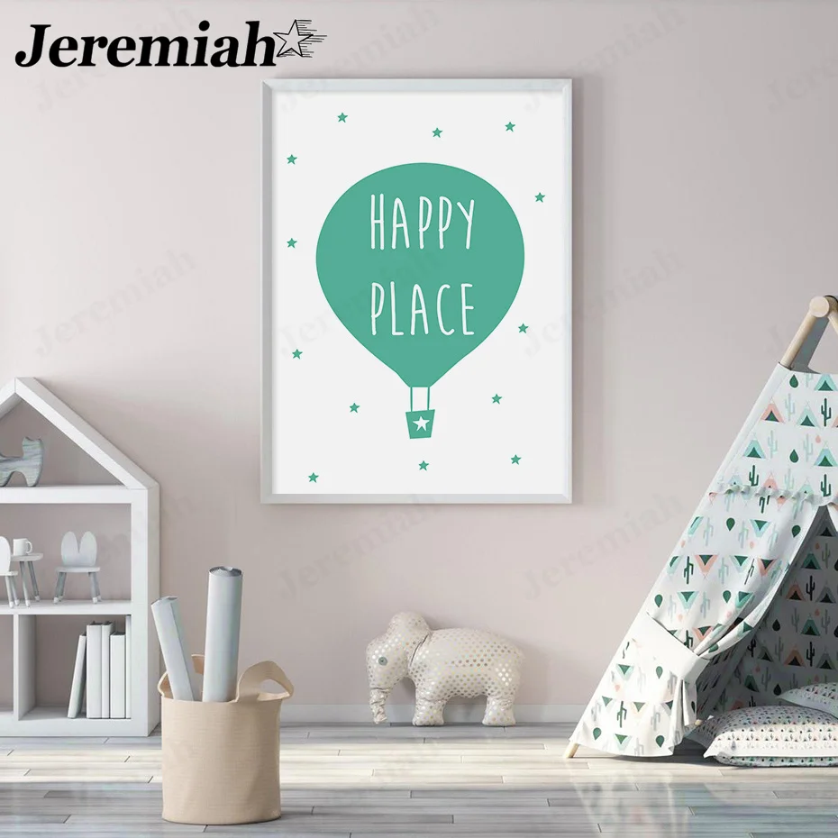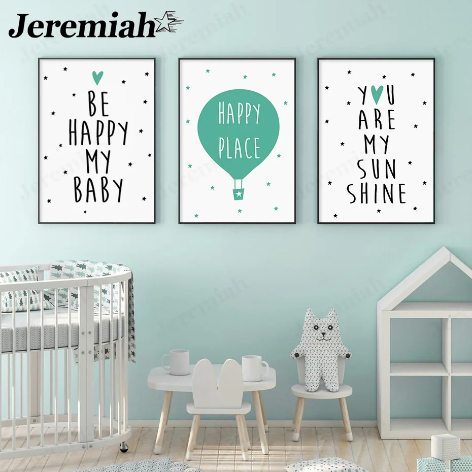 Современный минималистичный алфавит Холст плакат мой ребенок быть счастливым милым воздушным шаром картина Печать настенное искусство для детской комнаты домашний декор