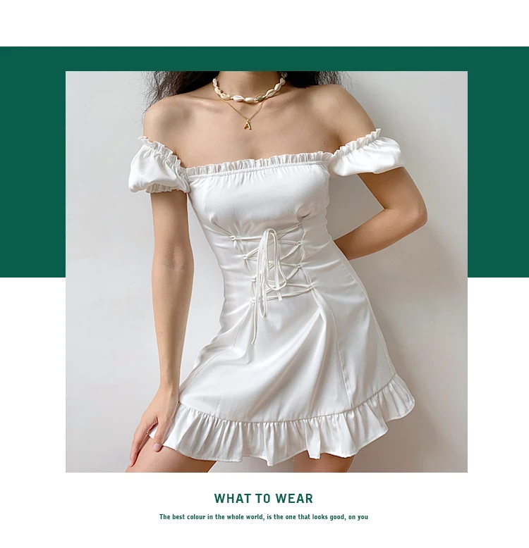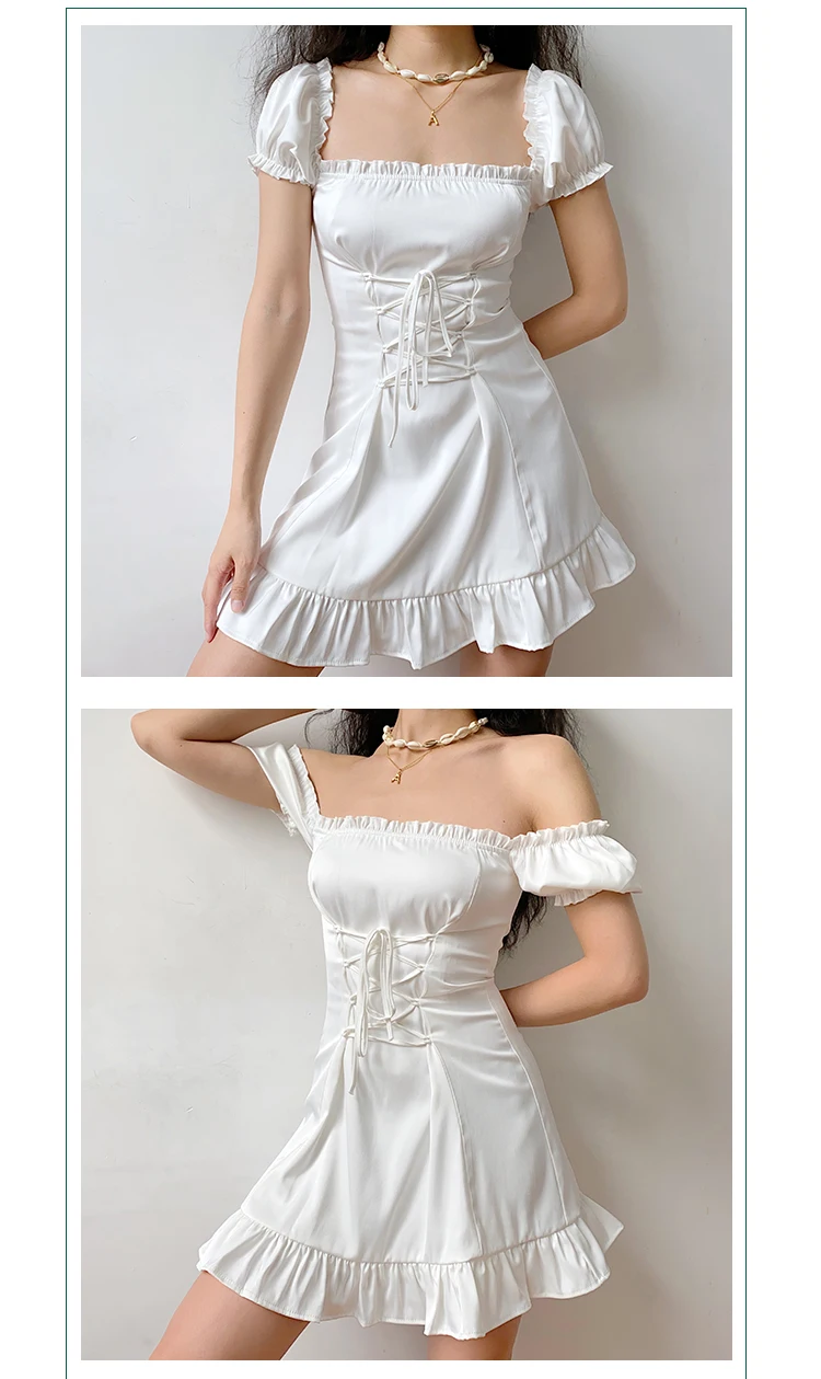 Женское кружевное мини-платье, белое элегантное облегающее платье с бантом, с пышными рукавами и квадратным вырезом, для рождественской вечеринки, в стиле Харадзюку