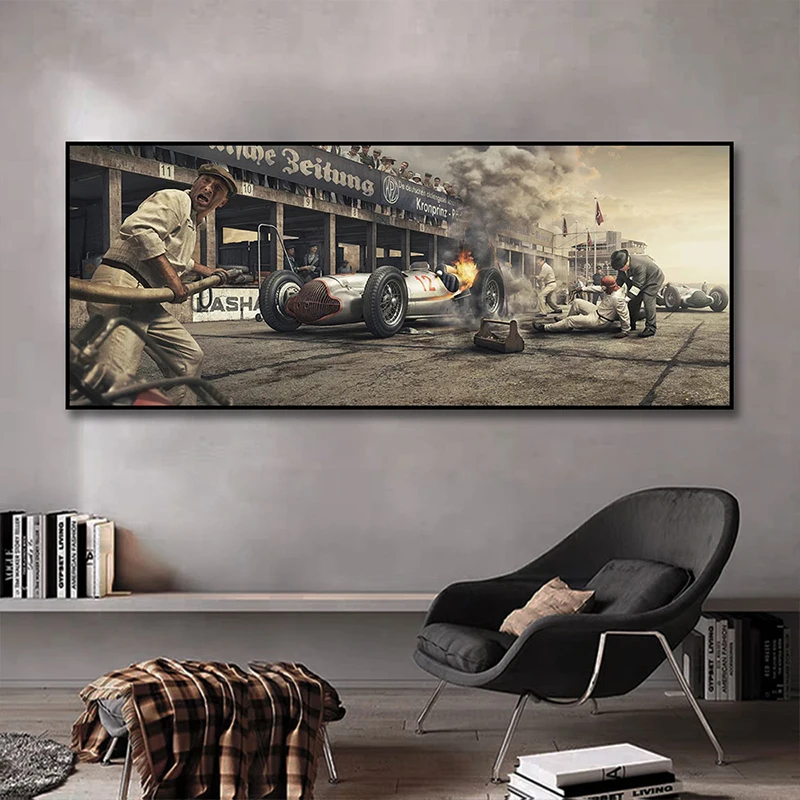 Постер для ремонта гоночных автомобилей в скандинавском стиле, Картина на холсте, плакаты и принты, Настенная картина для гостиной без рамки