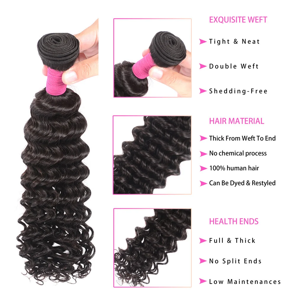 Megalook, пряди глубоких волн с застежкой, бразильские Реми человеческие волосы, волнистые двойные переплетенные прозрачные 4x4 кружевные застежки с пряди