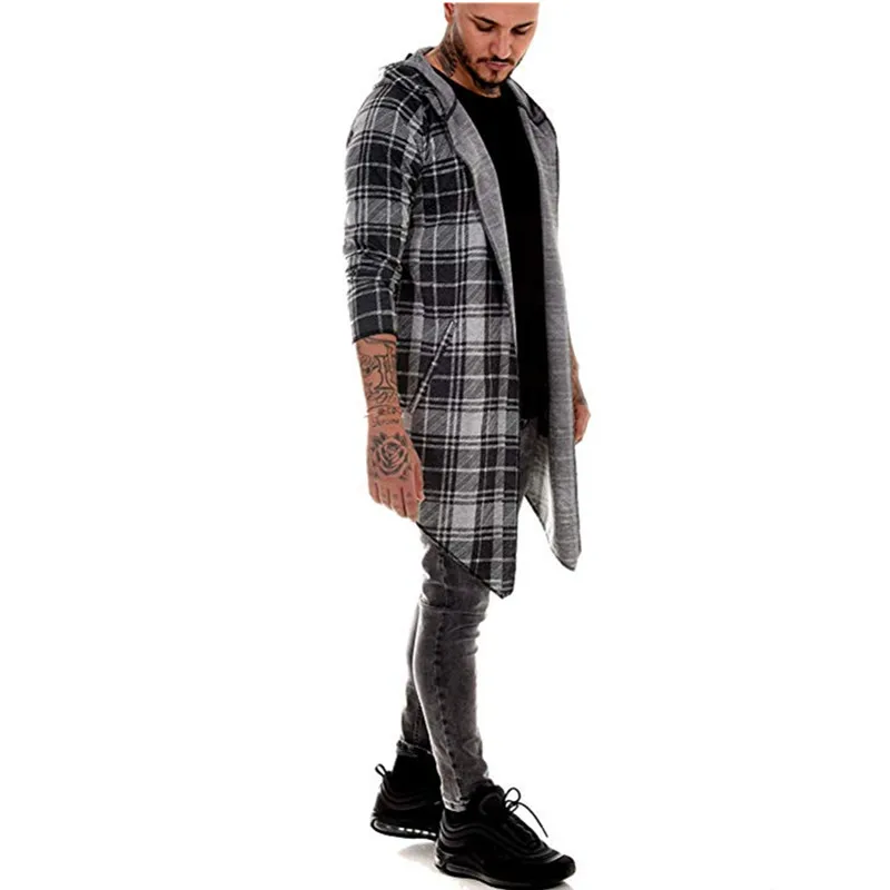Длинное Мужское пальто, готический Тренч, мужской кардиган, приталенный длинный плащ, свитер с капюшоном, вязаная клетчатая модная куртка в стиле стимпанк на осень