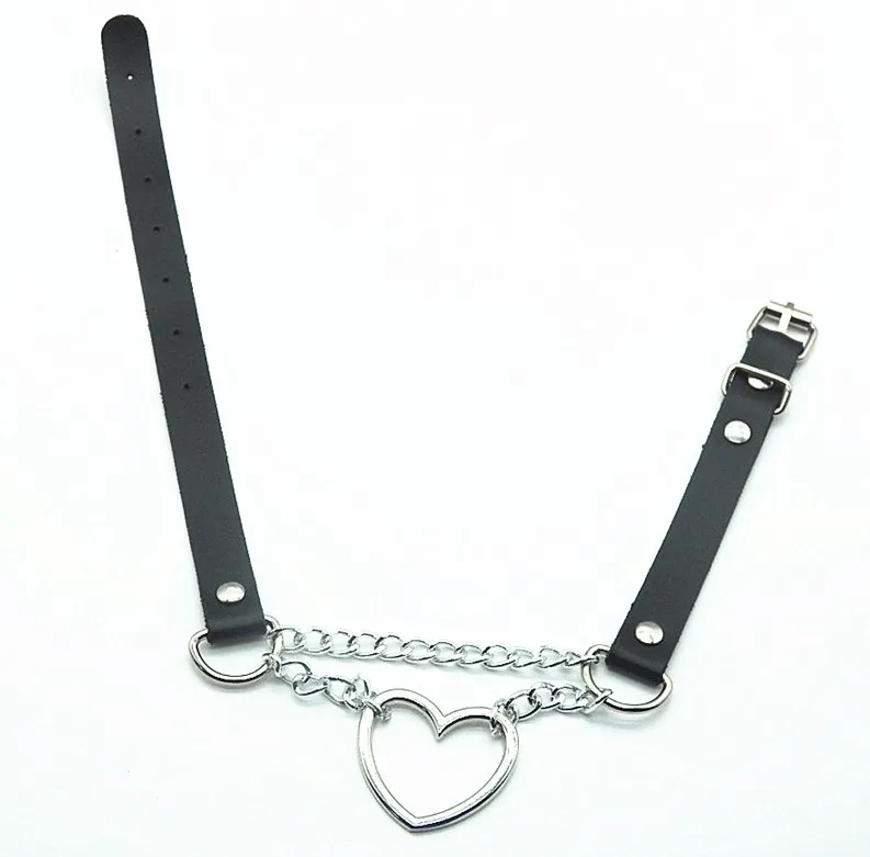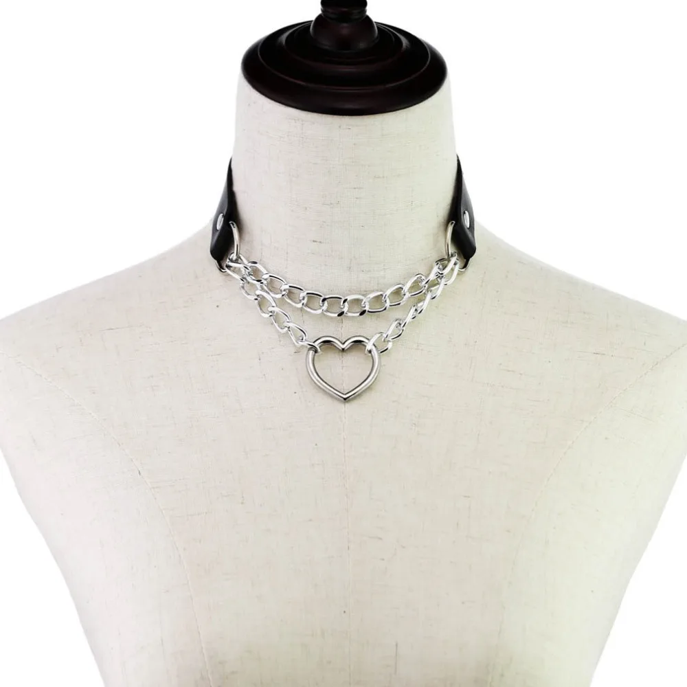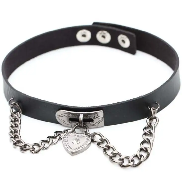 Из искусственной кожи в стиле панк кожа колье-чокер с цепочками и заклепками в стиле Харадзюку; Пикантная Мода в винтажном стиле в виде сердца круглый для женщин девушек ювелирные изделия кулон подарок