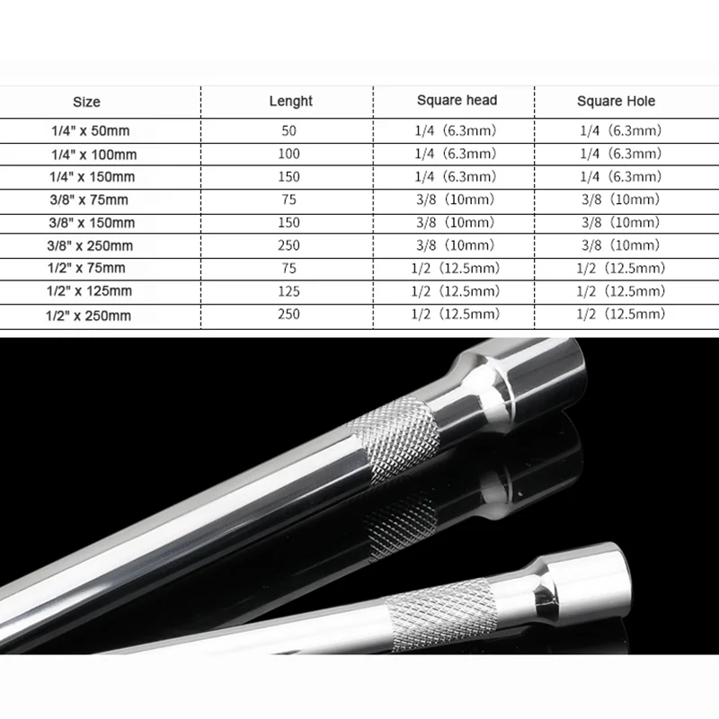 Удлинитель для торцевого ключа, 1 шт., 5075100125150250 мм, 14 дюйма, 38 дюйма, 12 дюйма