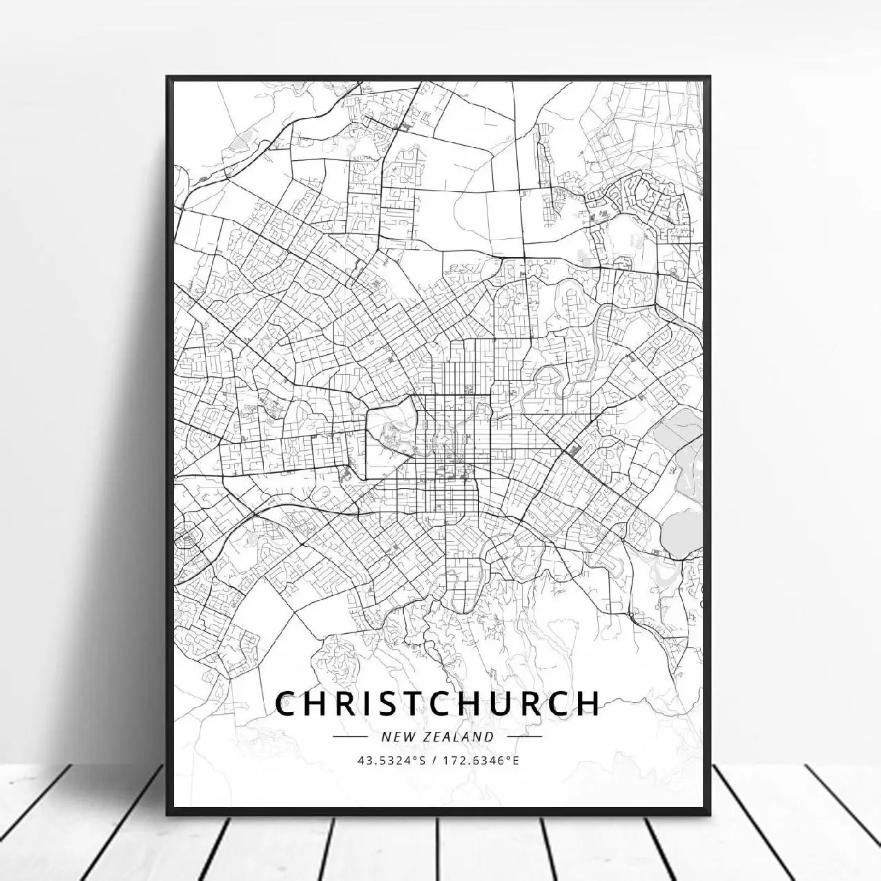 Hd Печать Окленда Dunedin Гамильтон Квинстаун веллингстон Рождественская церковь Whangarei Новая Зеландия холст Художественная карта Плакат рамка