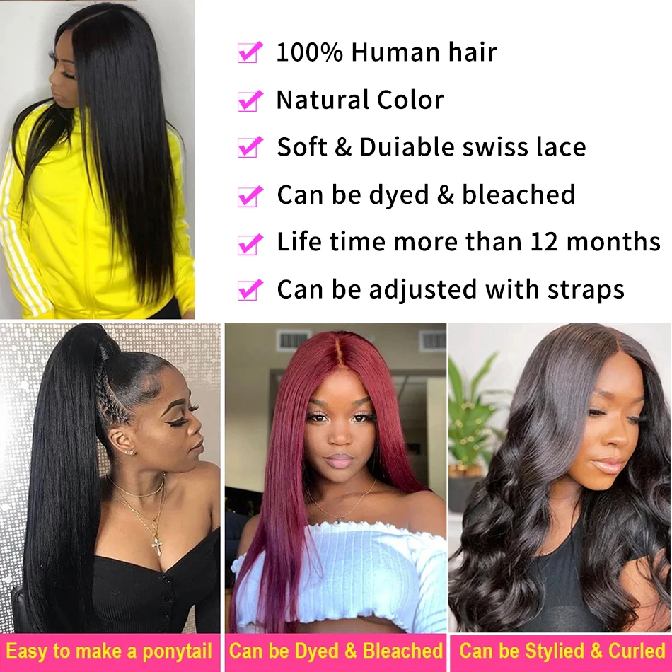 Перуанские прямые человеческие волосы, парики для женщин 13X 4, кружевные передние парики, натуральные волосы для наращивания, предварительно выщипанные кружевные передние парики