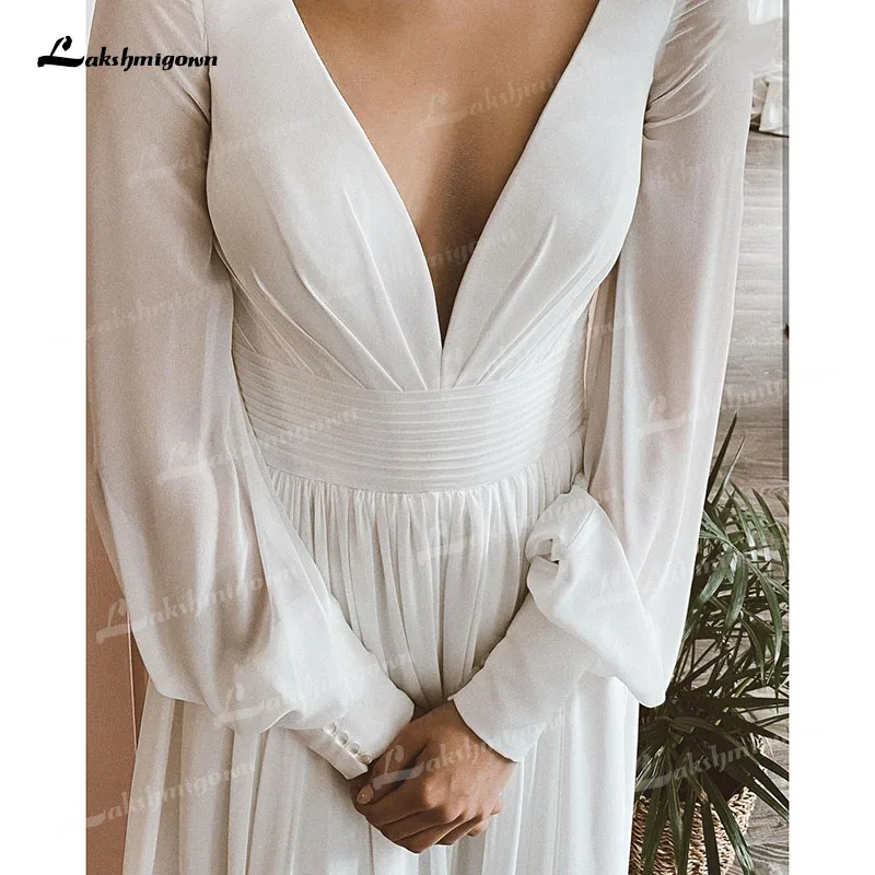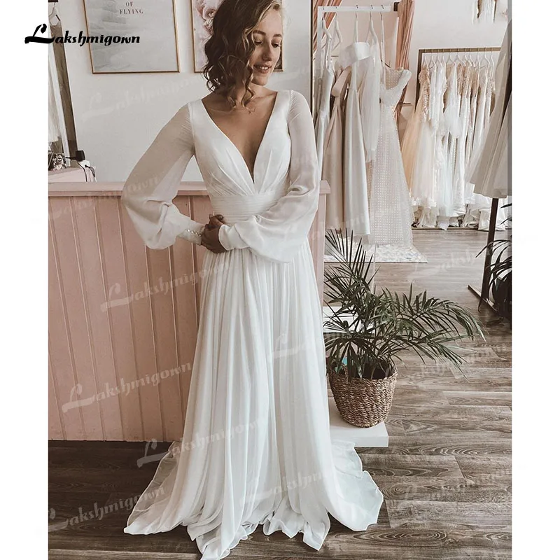 Женское шифоновое платье-трапеция, простое пляжное свадебное платье с длинным рукавом и V-образным вырезом