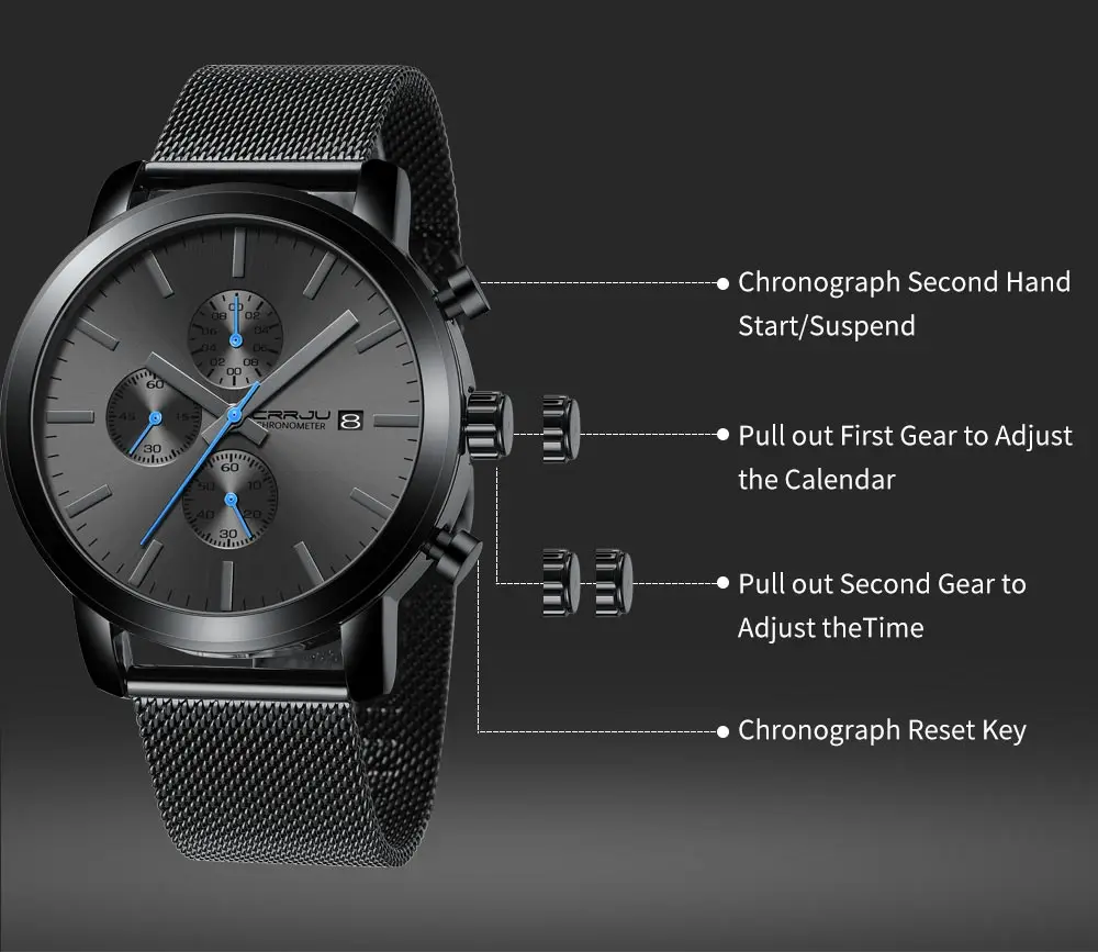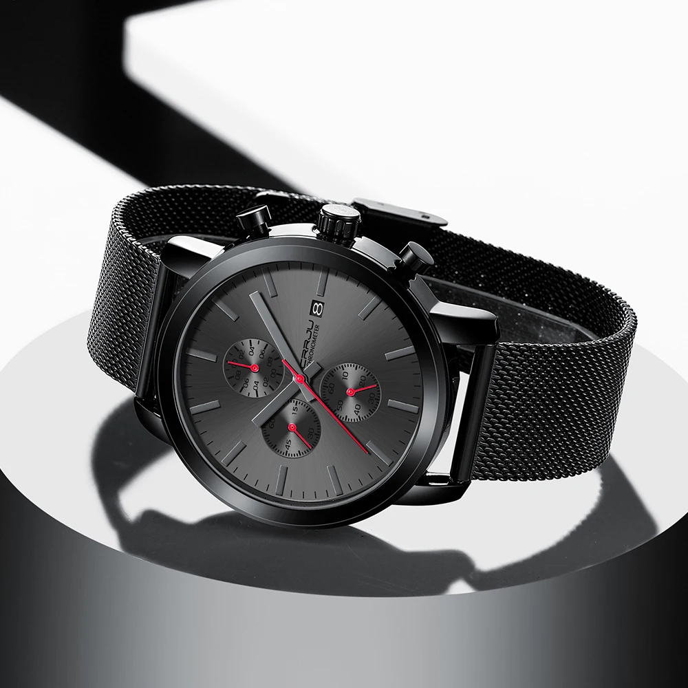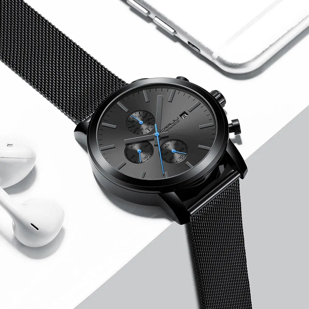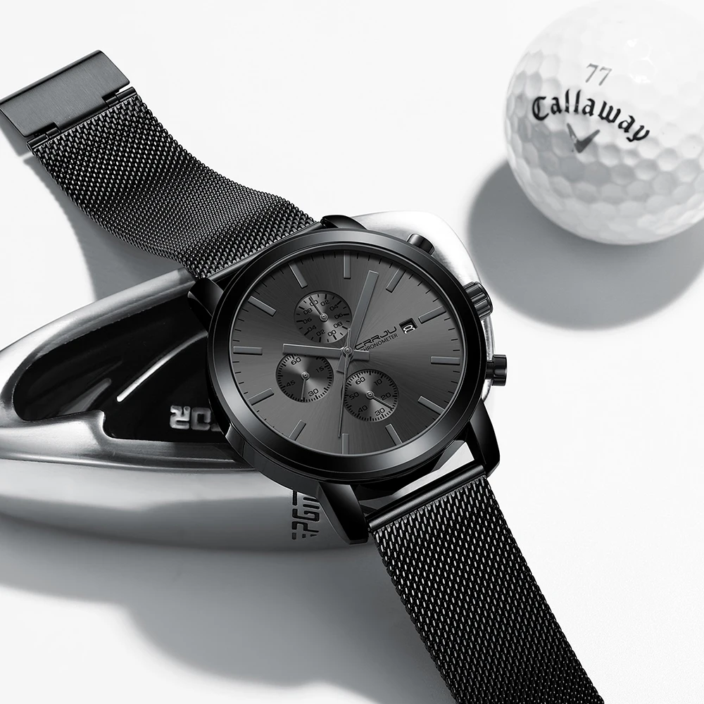 Мужские часы CRRJU, деловые кварцевые наручные часы с сетчатым хронографом из нержавеющей стали, мужские часы с датой, мужские часы
