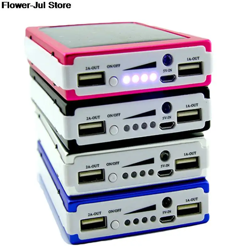 Портативный внешний аккумулятор 5x18650, внешний аккумулятор 18650, внешний аккумулятор на солнечной энергии, чехол сделай сам, коробка с двумя USB-портами, зарядное устройство для телефона, фонарик