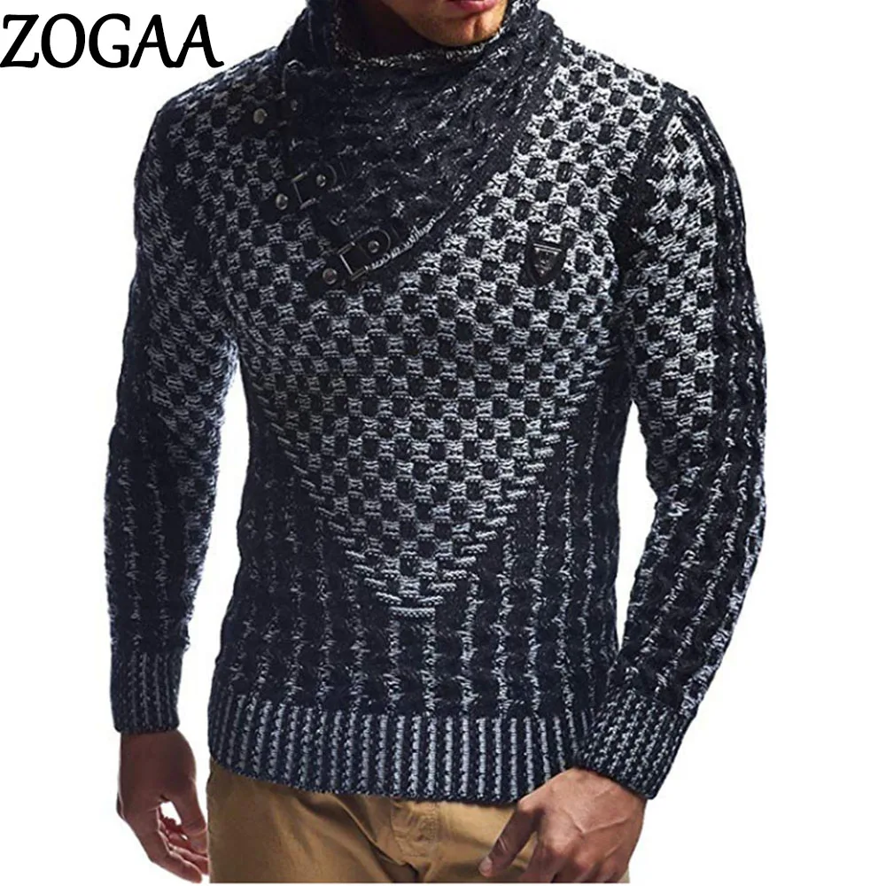 Мужские свитеры ZOGAA, теплые пуловеры с высоким воротником, мужска...