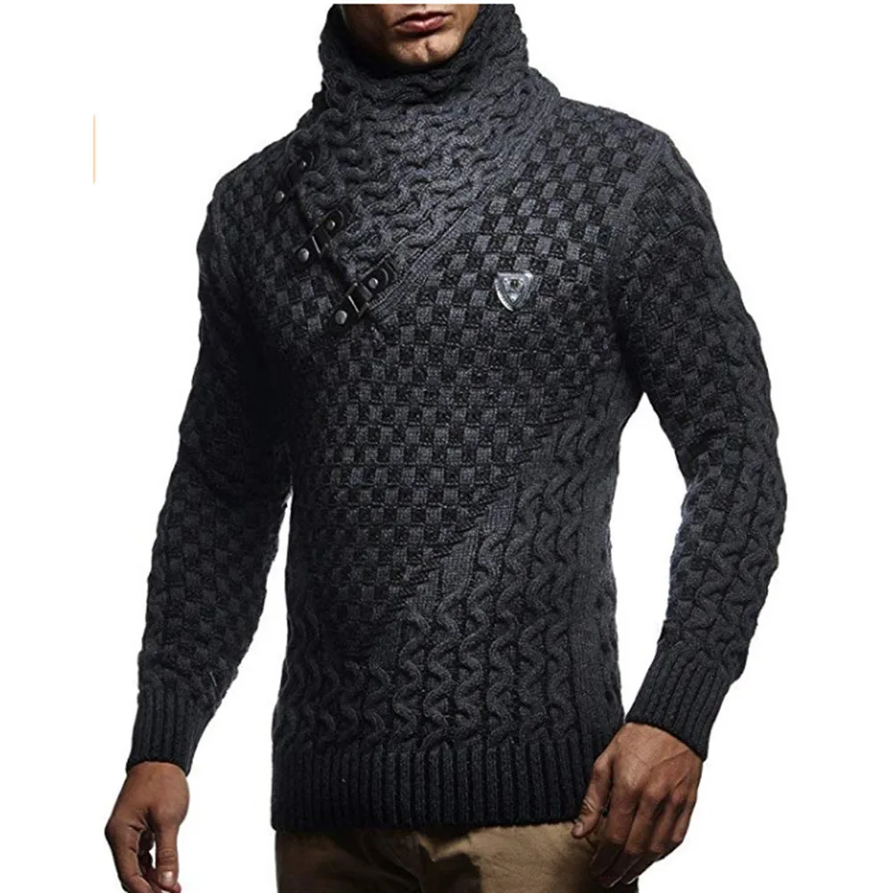 Мужские свитера 2021, теплый пуловер с высоким воротником с узором, Мужская одежда, повседневная трикотажная одежда, тонкий зимний свитер, Мужской пуловер