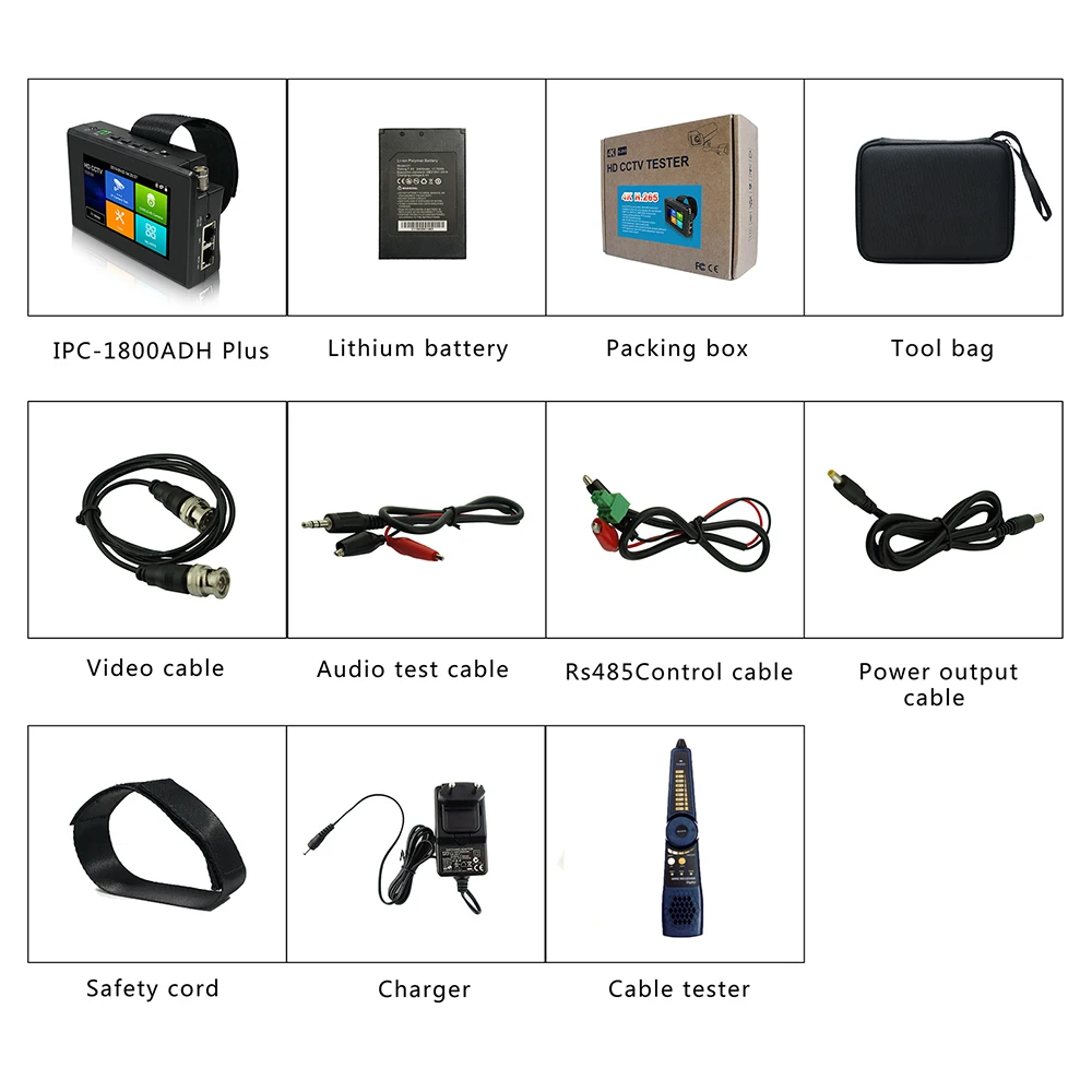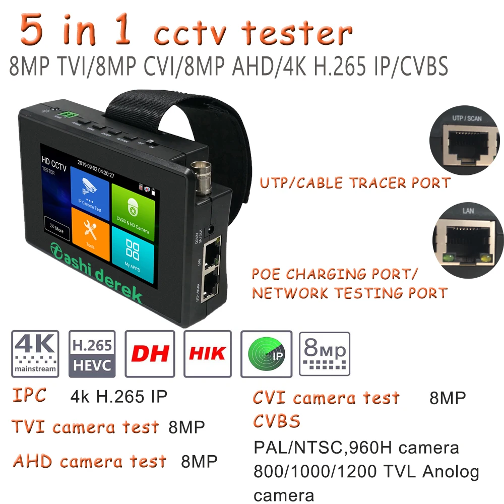 5-дюймовый IPS сенсорный экран IP-камера тестер предназначен для обслуживания и установки IP аналоговых, HD коаксиальных камер, а также другого оборудования безопасности. Разрешение 1920*1080 позволяет ему отображать сетевые HD-камеры и аналоговые камеры в высоком разрешении. Устройство поддерживает множество функций ONVIF PTZ и аналогового управления PTZ, а также тестирования кабеля. Монтажникам систем видеонаблюдения часто приходится носить с собой различные испытательные инструменты, чтобы завершить свою работу. Если взять тестер для камеры «все в одном», что делает условия работы более безопасными и повышает производительность.