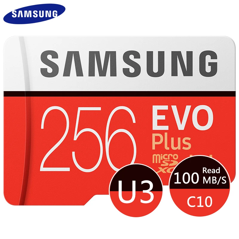 Карта памяти microSD SAMSUNG EVO PLUS, высокоскоростная карта памяти microSD Class 10 с поддержкой скорости 100 МБс, карта U3 TF UHS-I, на 256 ГБ, 128 ГБ, 64 ГБ, 32 ГБ