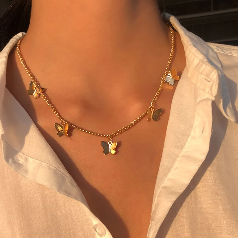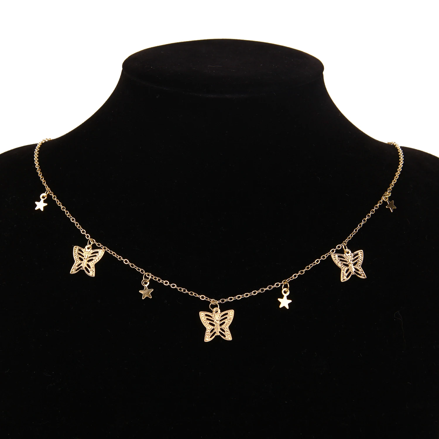 Ожерелье с подвеской в виде бабочки, золотая цепочка многослойные, в стиле бохо пробы, ожерелья-Чокеры Шарм с Луной и звездой, модный подарок для ювелирных изделий