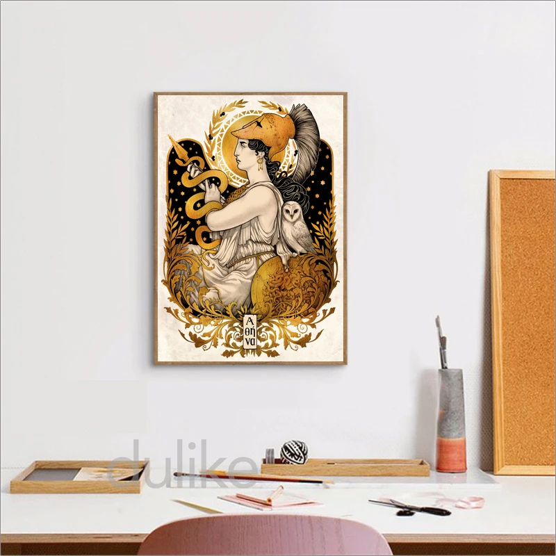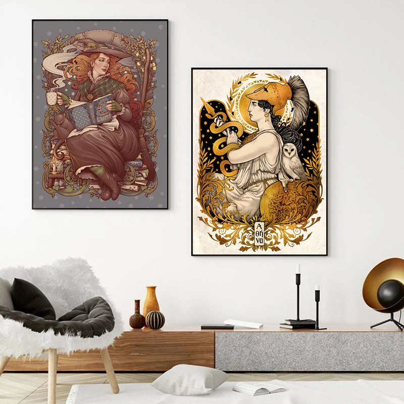 Фольклорная ведьма в стиле модерн кукольница винтажный постер Картина на холсте атена Минерва Греческая богиня сова новый принт домашний декор