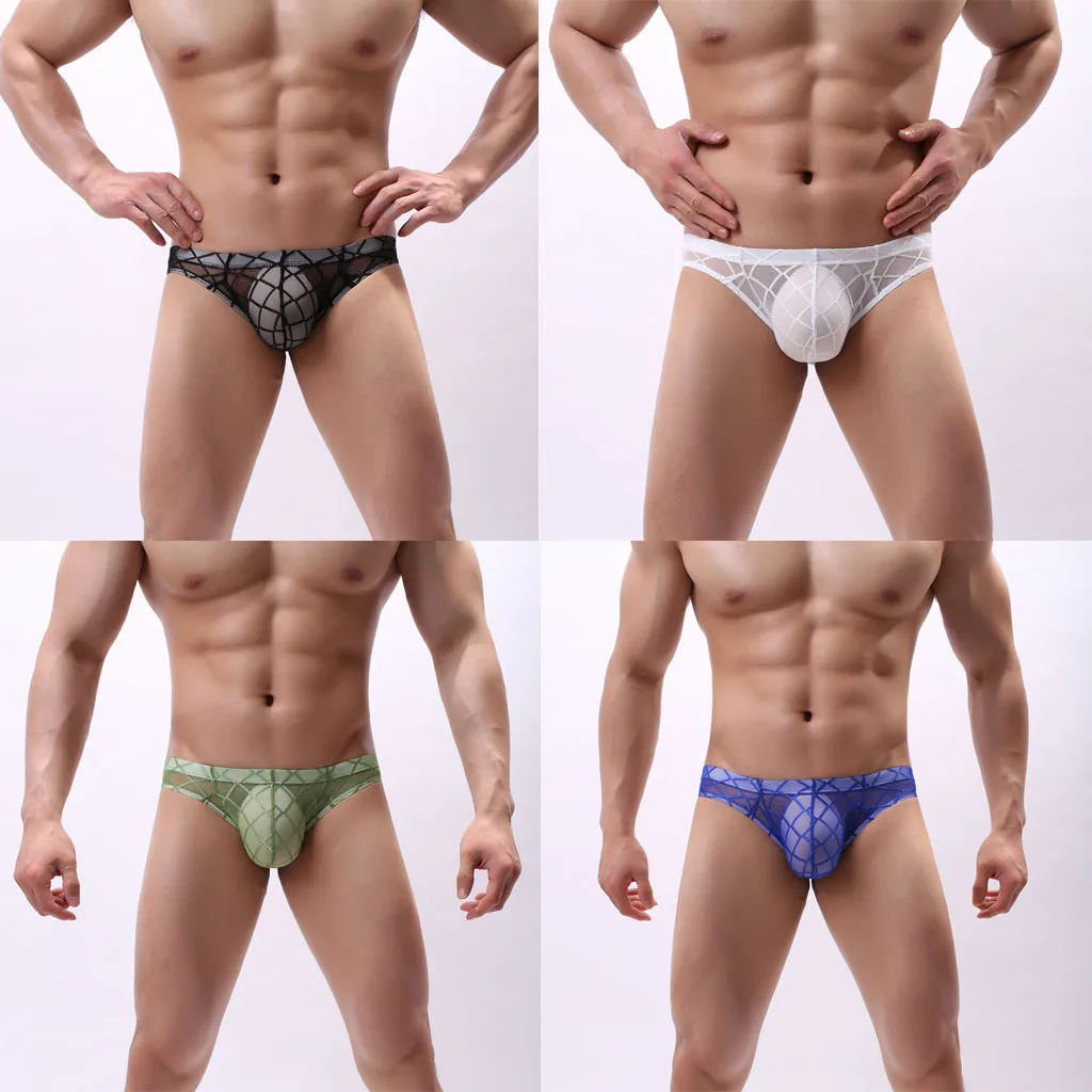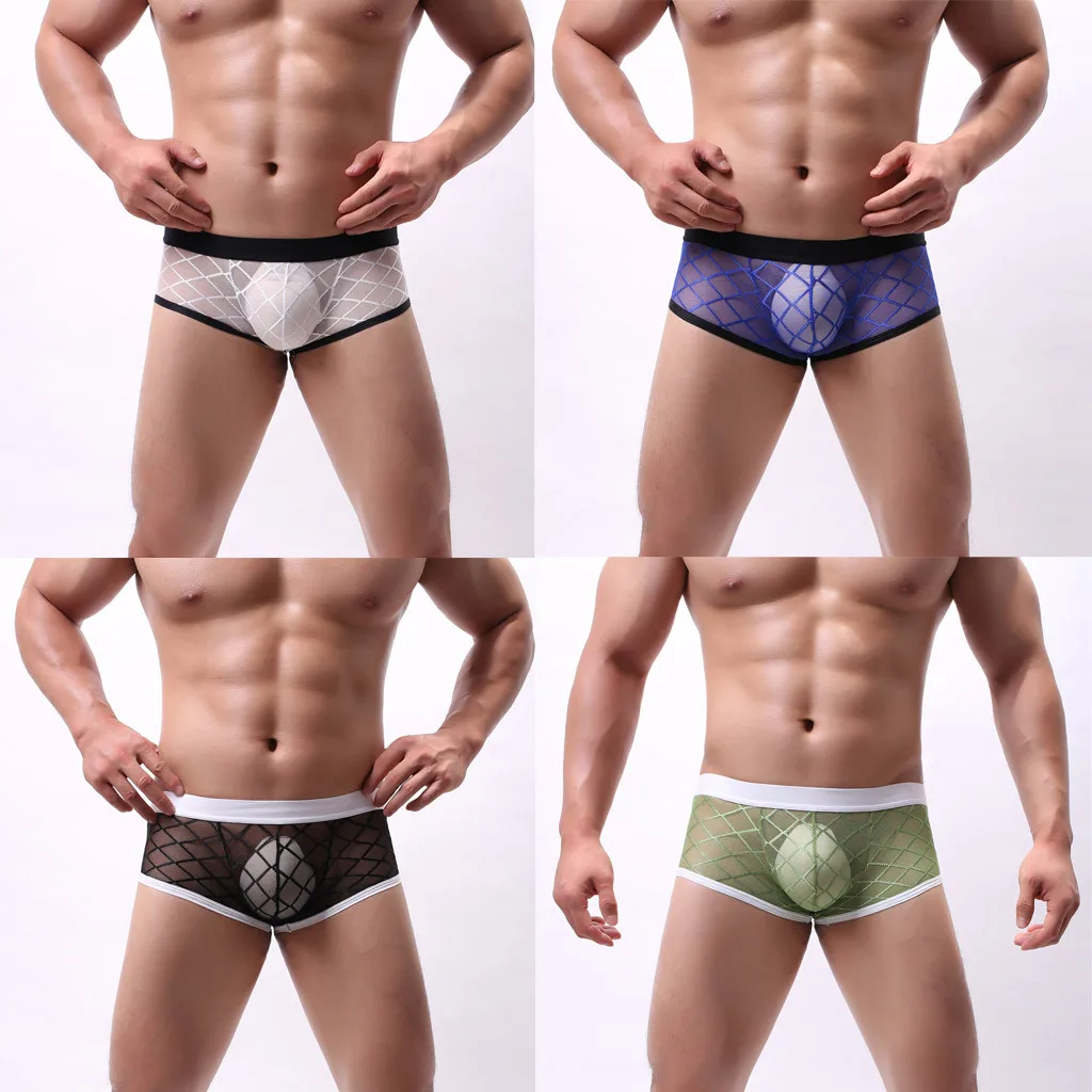 Трусы-боксеры мужские сетчатые, с вырезами, с заниженной талией, прозрачные, сексуальное нижнее белье, стринги для геев, M-2XL
