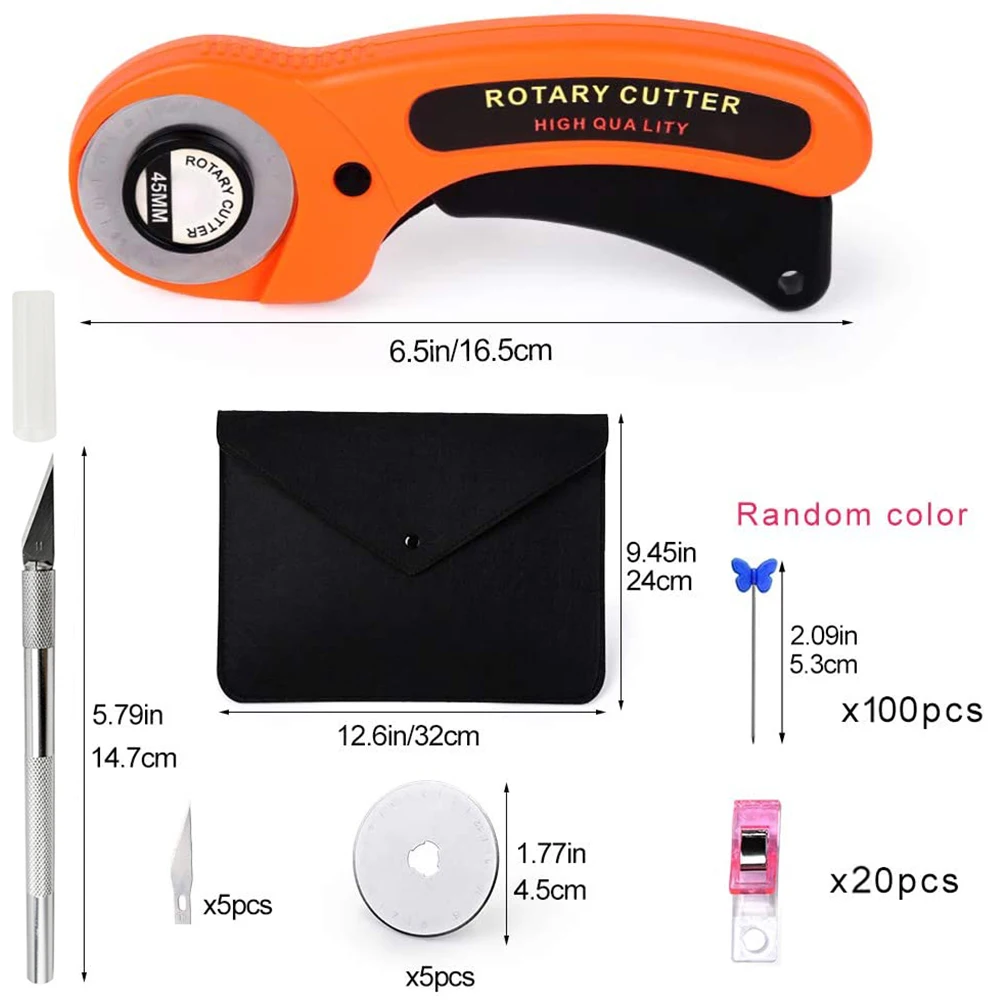 Набор роторных резаков 45 мм, 125 шт., с ковриком для резки, для пэчворка, линейки, ножа для резьбы, зажимы для шитья, сумка для хранения ткани