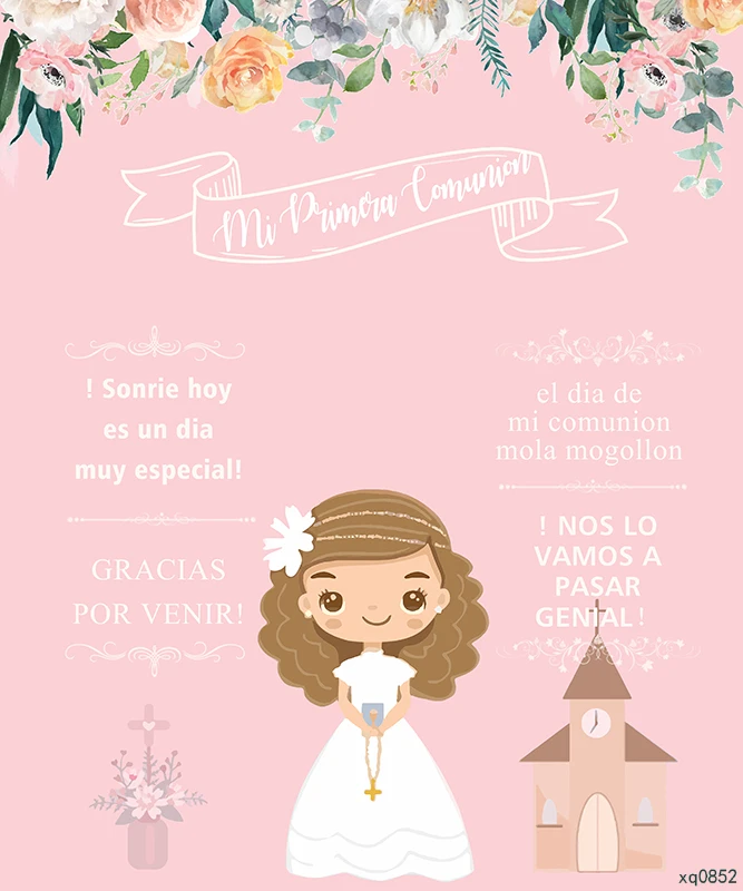 Виниловый фон для фотосъемки с изображением девушек на Первое причастие, с изображением цветов, церковного крещения