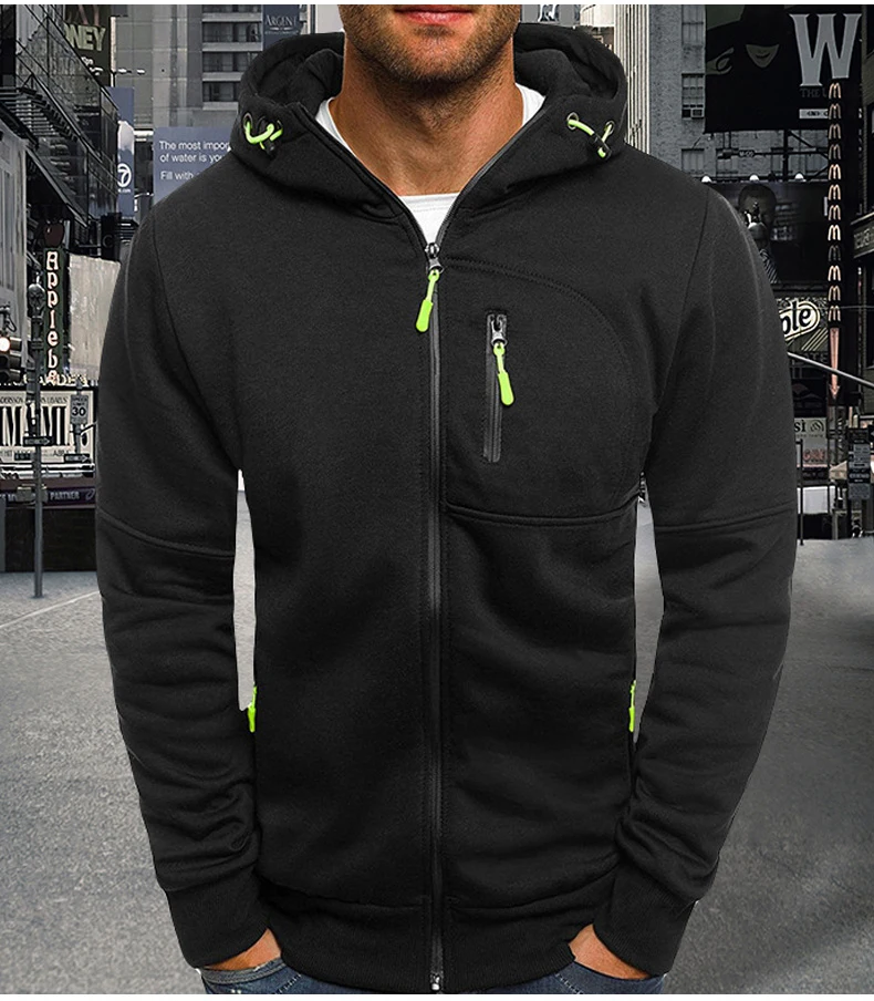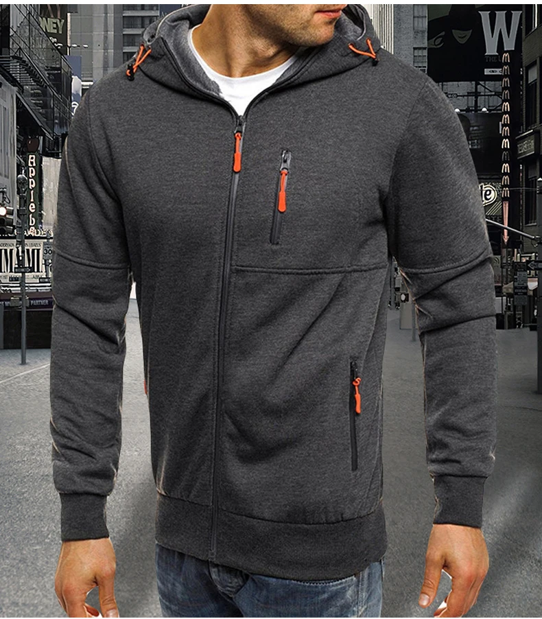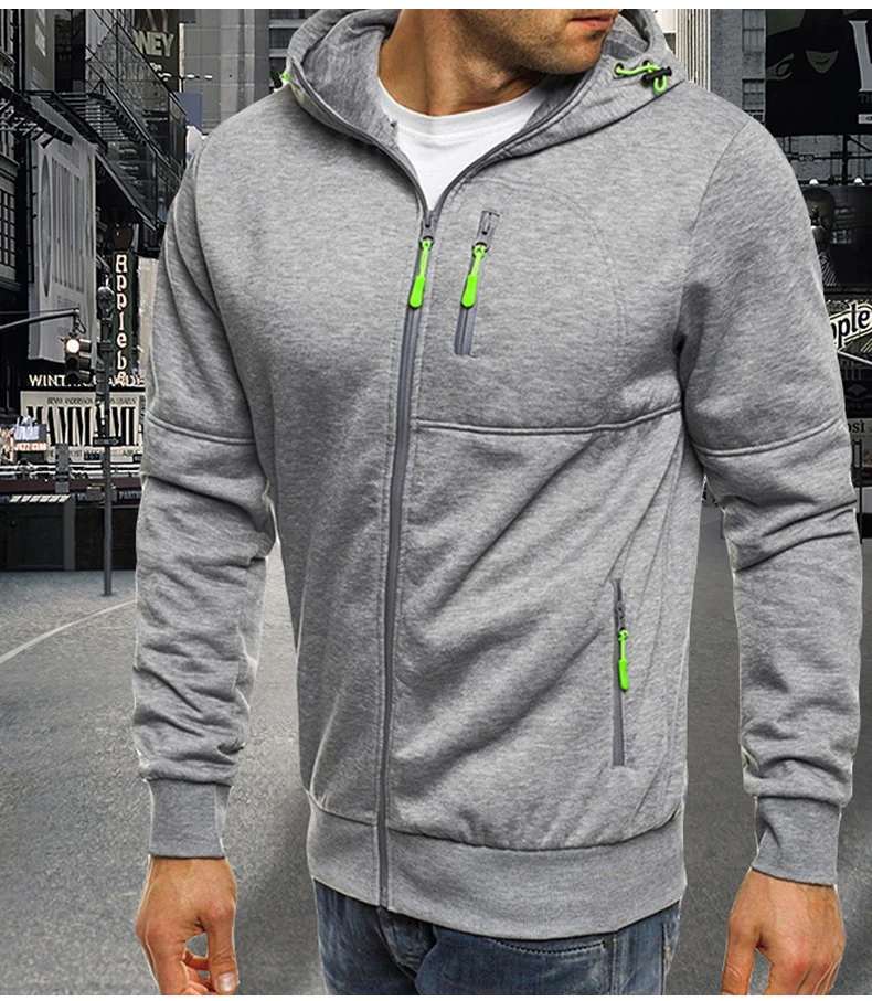 Куртка мужская повседневная на молнии, Модный жакет, однотонная спортивная куртка для бега, пальто с капюшоном, одежда для мужчин, осень
