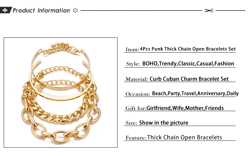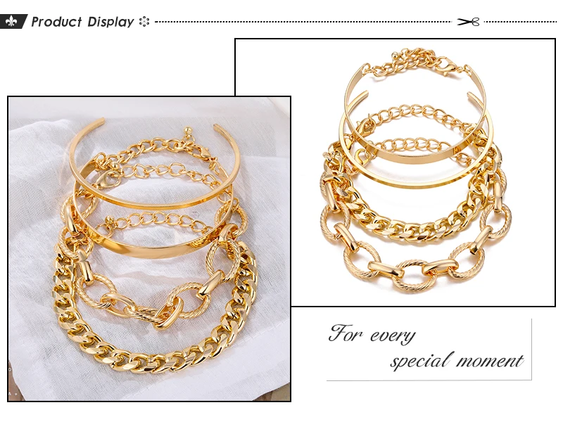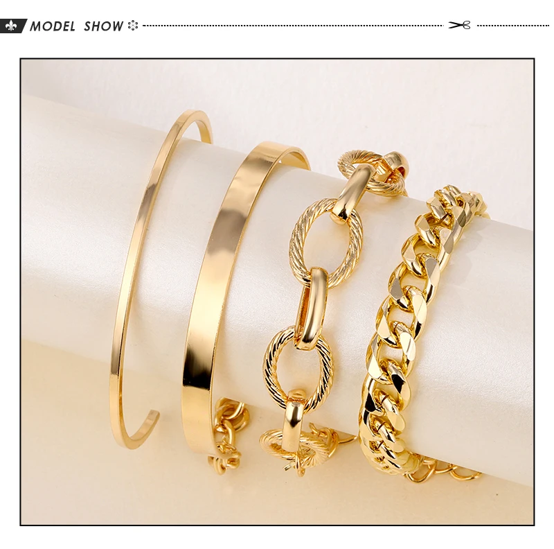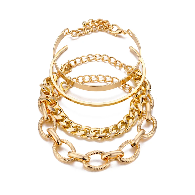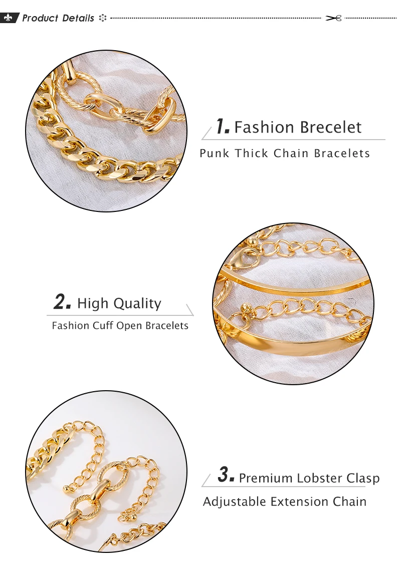 2021 StyleFashion Punk Multi-layer Golden Bracelet Set
