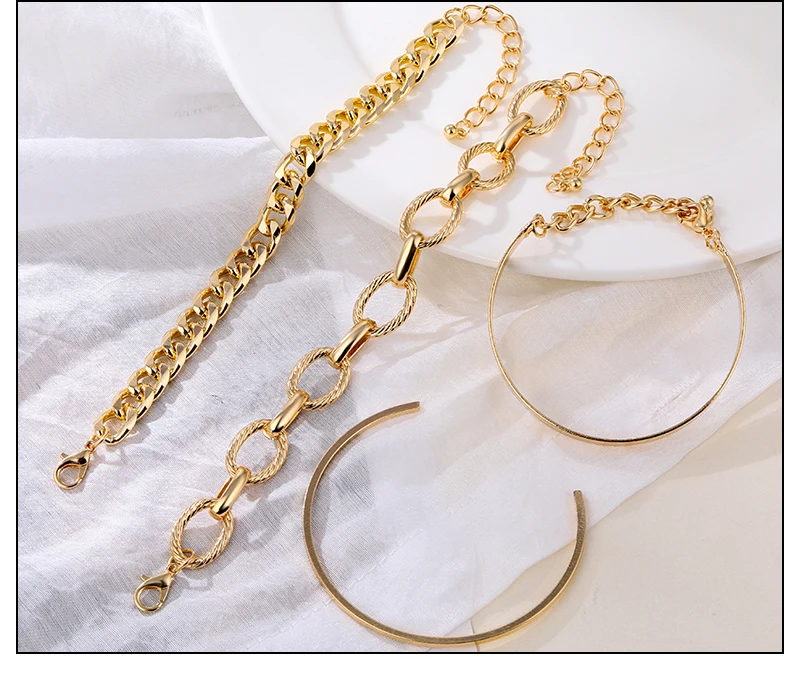 IFMIA женский набор больших браслетов-цепочек золотого и серебряног...