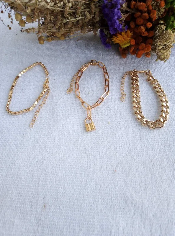 Браслет женский VKME, винтажный, золотистый, с кубинским шармом, 4 шт.