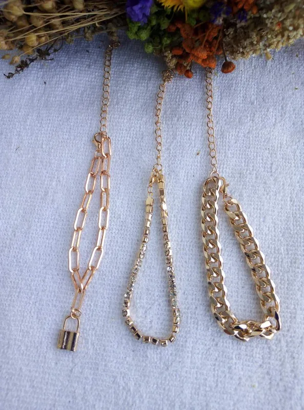 Комплект браслетов-цепочек в стиле панковские геометрические Женски...