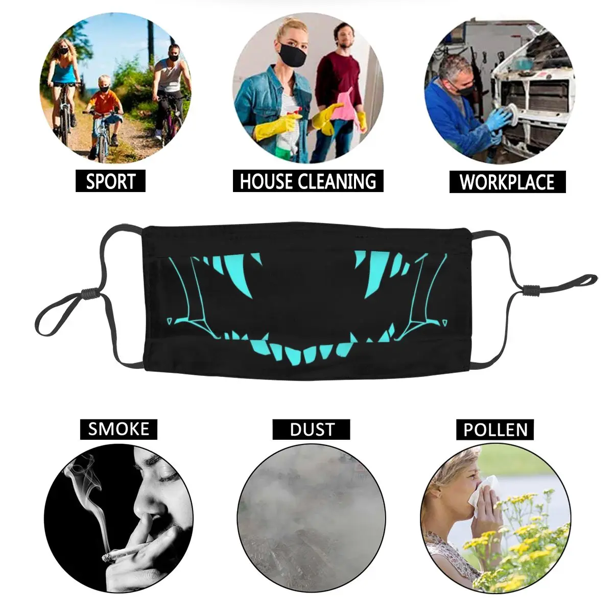 Неоновые Oni Монстр зубы многоразовая маска для лица для взрослых японских самураев, пластичный монтаж, демон Hannya против дымки пыли Защитная крышка рот муфельная печь