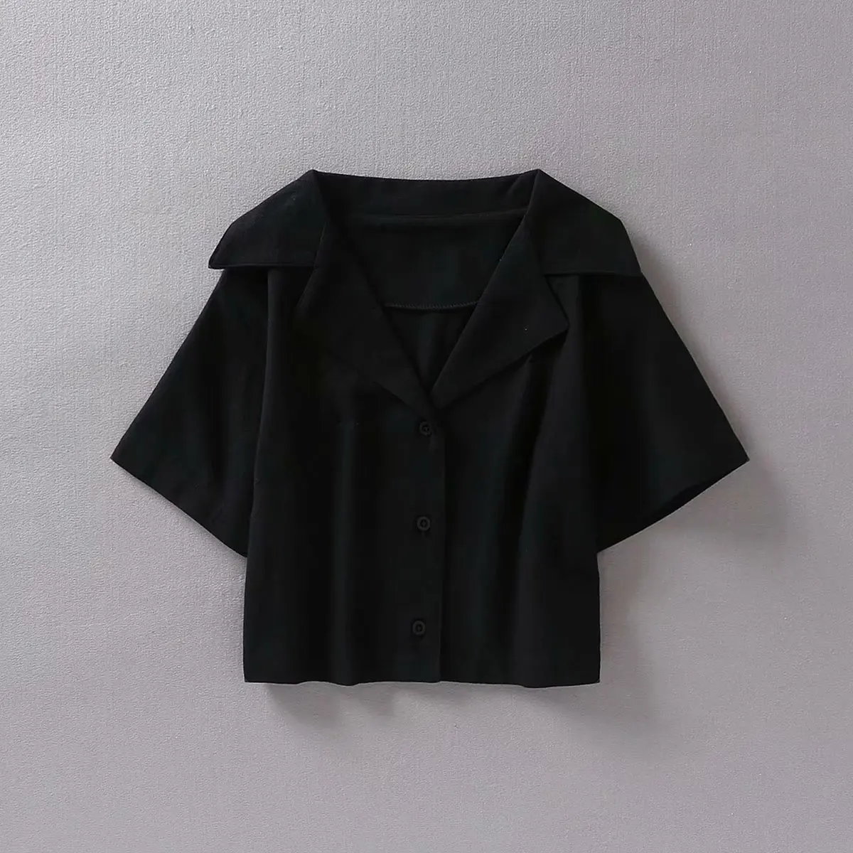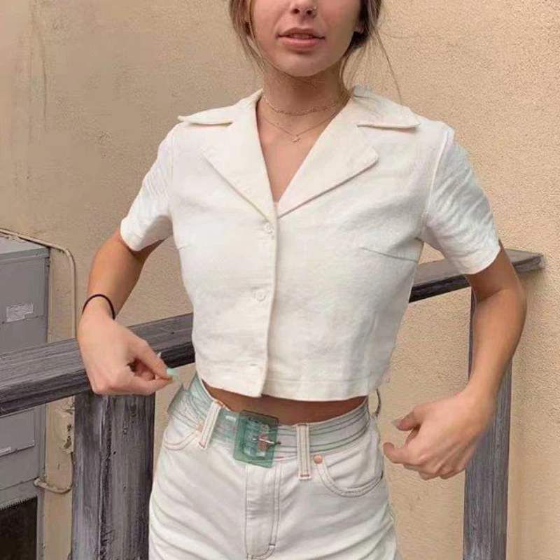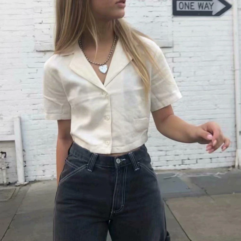 Kawaii рубашки в стиле Харадзюку для женщин, винтажный укороченный топ, блузка, Женская белая рубашка на пуговицах, корейская мода, дизайнерская рубашка с воротником