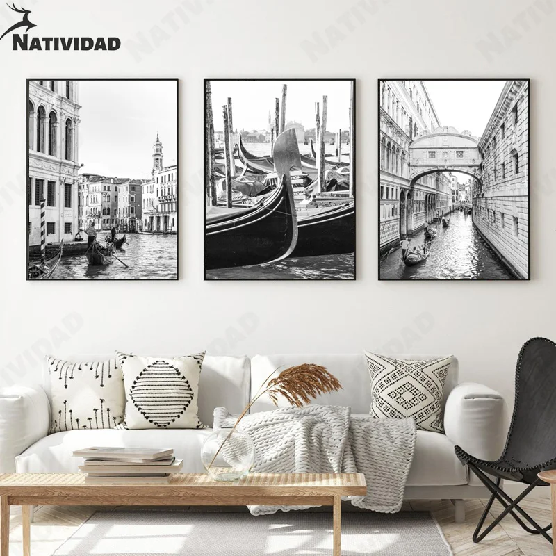 Декор для дома, гостиной, картина, мост, морской риф, черно-белый п...