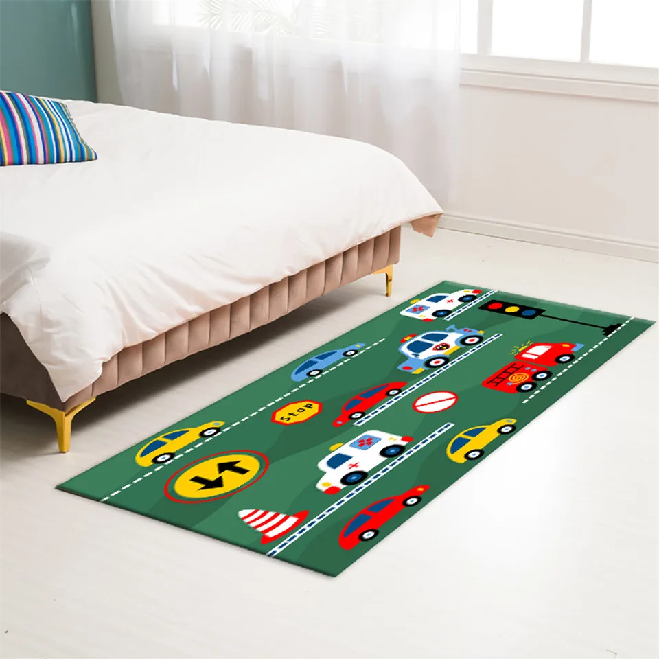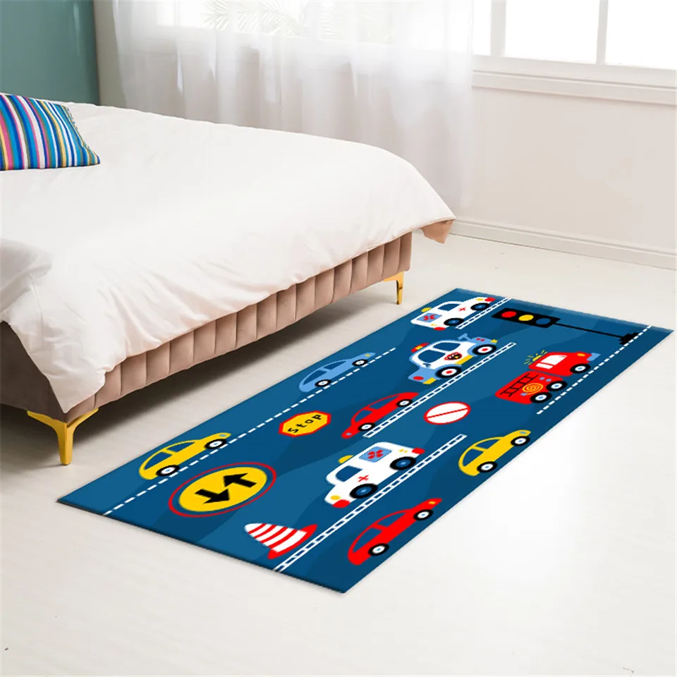 Скандинавский мультяшный автомобильный синий коврик для спальни для детей, мягкий фланелевый прикроватный коврик, милый кавайный коврик в прихожую, входной дверной коврик