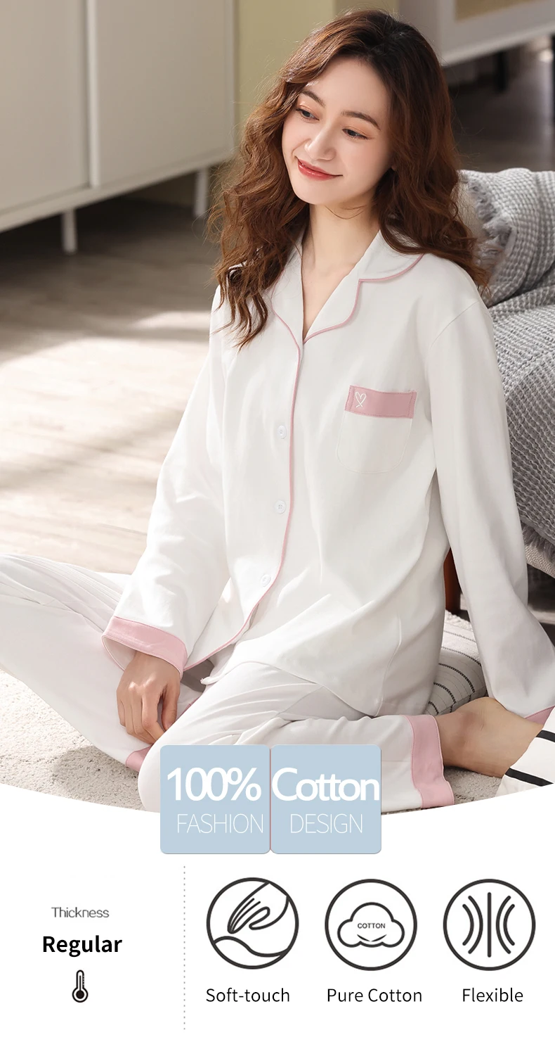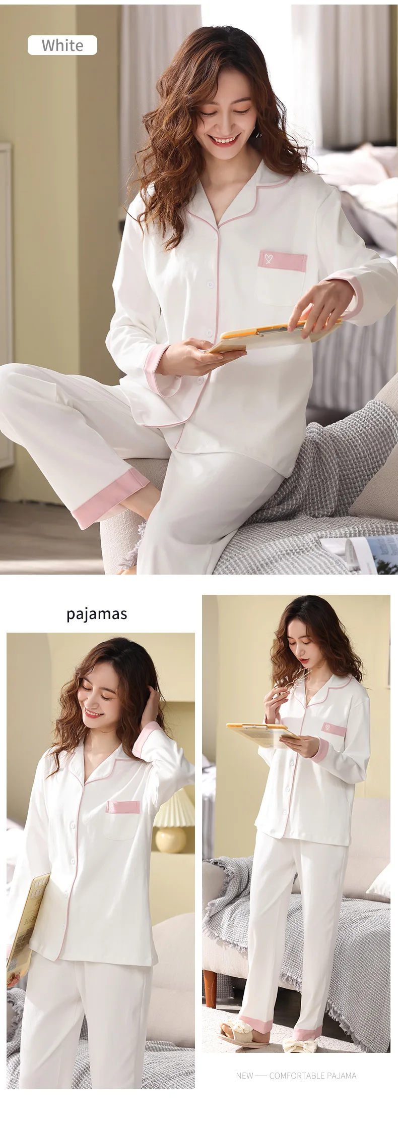 Пижамы для женщин 100% хлопковый комплект, состоящий из универсального Пижама, пижама с длинными рукавами, одежда для сна, натуральный хлопок, одежда для сна для женщин 2021 зимняя Пижама Femme