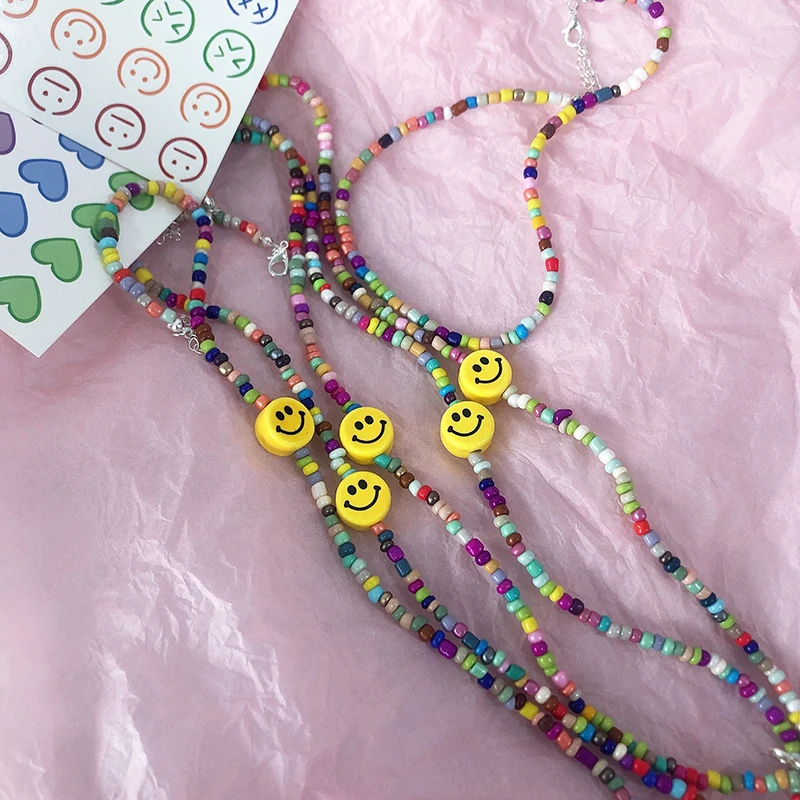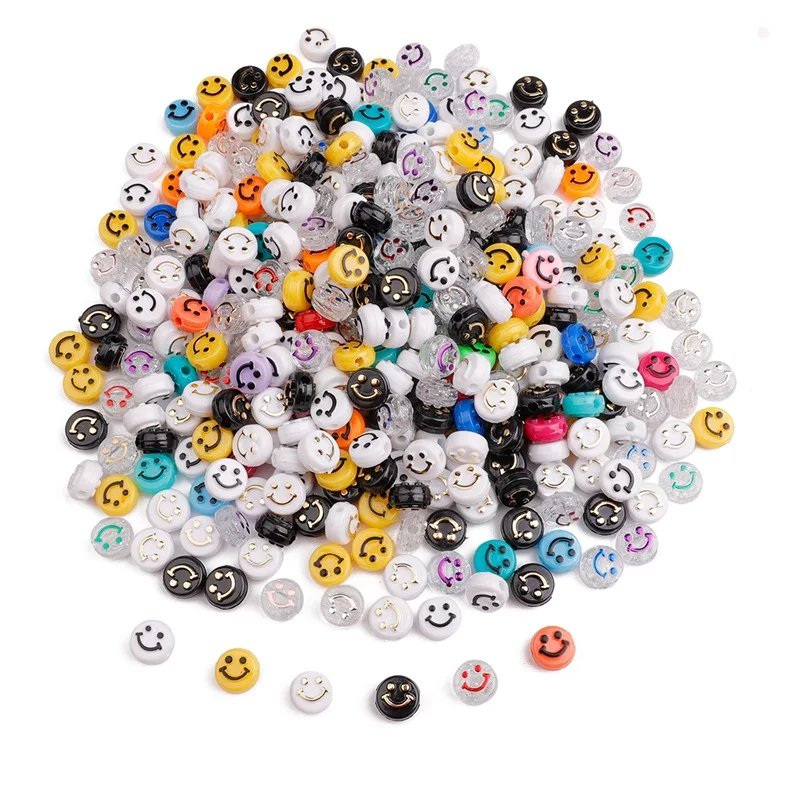Бусины акриловые россыпью со смайликом, разноцветные бусины для бра...