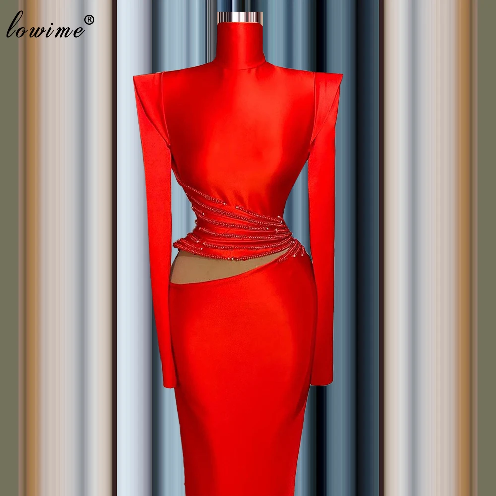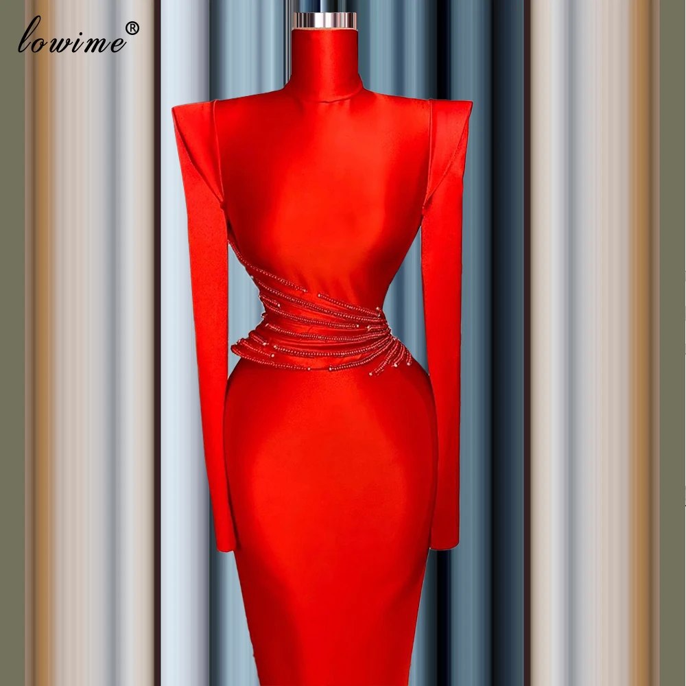 Красные вечерние платья русалки с длинным рукавом, мусульманские Вечерние Платья, простые женские платья знаменитостей, 2 вида конструкций