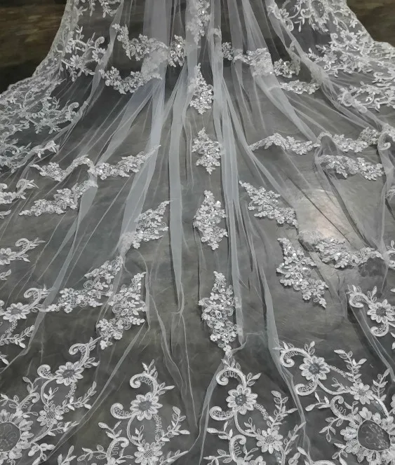 Фата свадебная Длинная с кружевной отделкой, Тюлевая Фата для венчания, с гребнем, цвет слоновой кости, 5 м, 4 м, 3 м