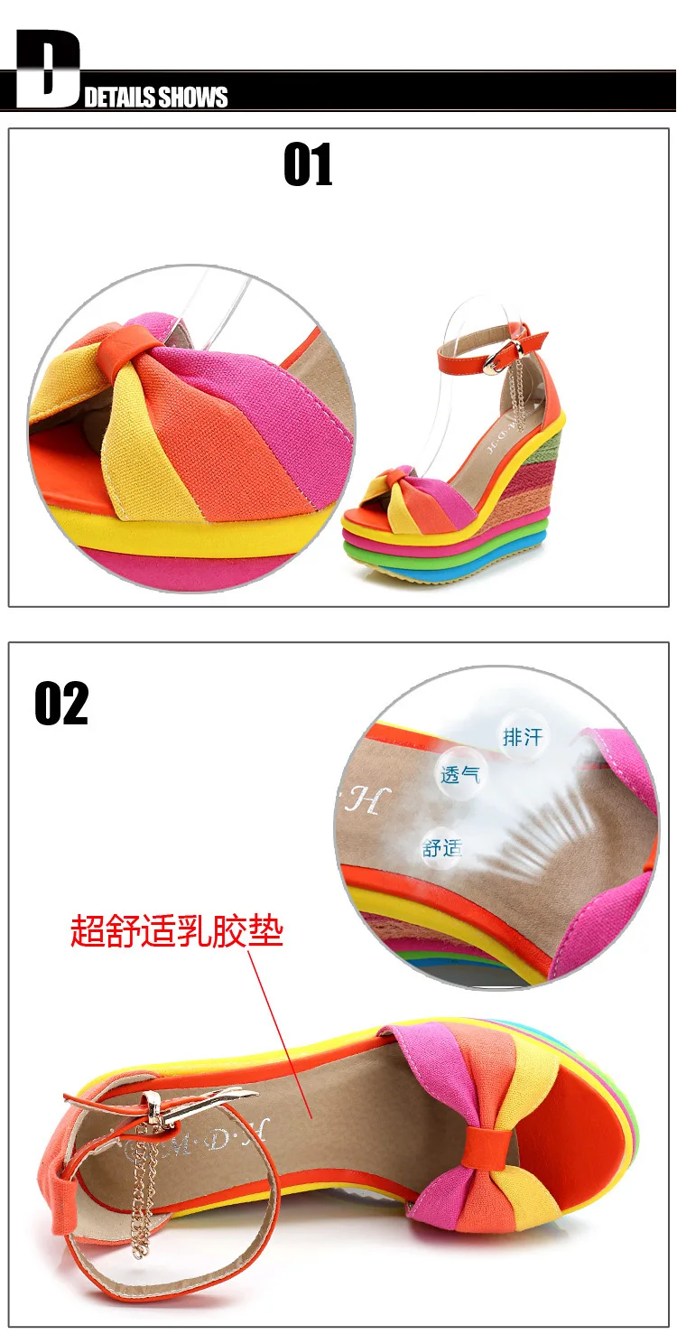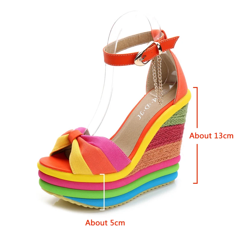 Женские сандалии на танкетке, разноцветные радужные туфли на платфо...