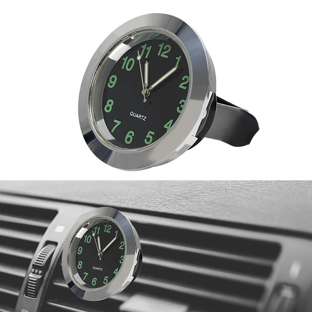 Автомобильные мини-часы с клипсой на вентиляционное отверстие, Стайлинг автомобиля, черные, серебристые кварцевые украшения механики, автомобильное украшение