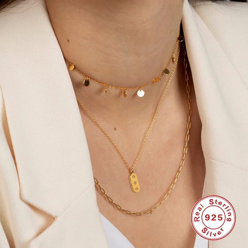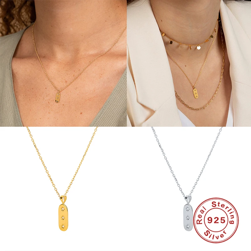 CANNER 100% S925 Серебряная цепочка Ожерелье s INS геометрические циркониевые прямоугольные Многослойные Ожерелье Длиной до ключиц с подвесками joyas