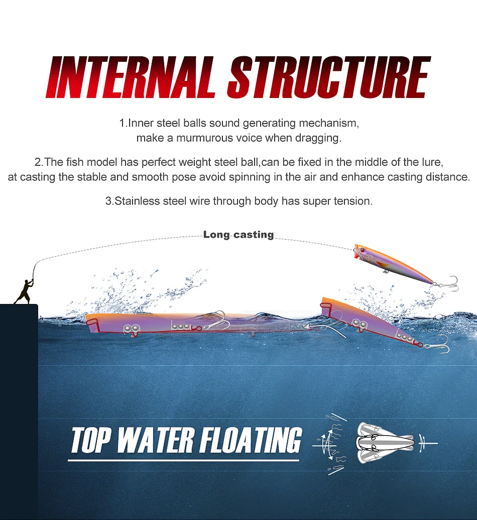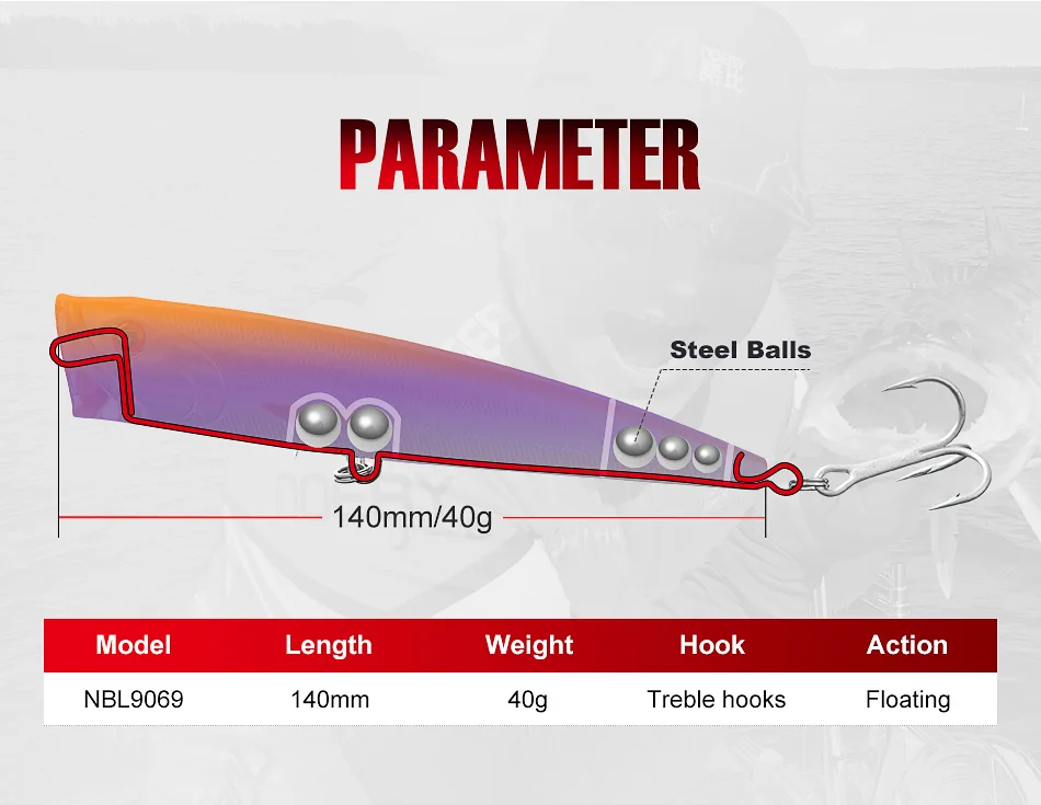 Noeby NBL9069 Popper твердая приманка для рыбалки Topwater, плавающие искусственные приманки 140 мм 40 г для рыбалки, морской окуня