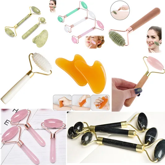 Массажный ролик для лица и гуаша, набор инструментов из натурального нефрита, скребок-массажер гуаша для подтяжки лица и похудения, 31 стиль