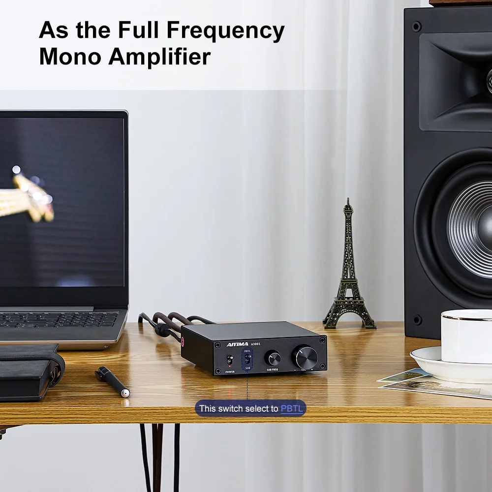 Когда ''PBTL/SUB'' переключается на ''PBTL'', SPK OUT подключается к динамику полного диапазона.