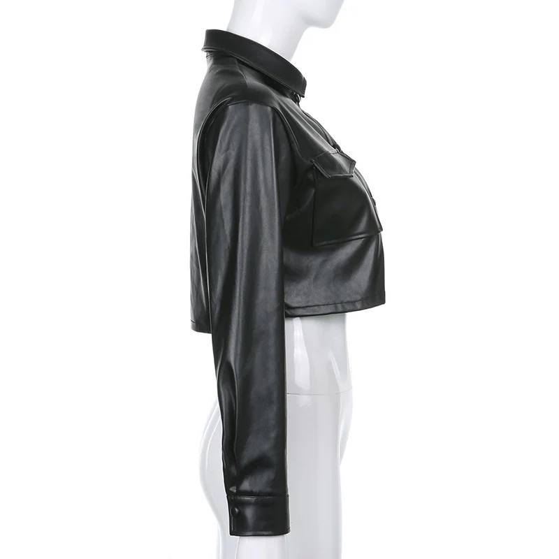 Рубашка женская из экокожи, с отложным воротником и двумя карманами